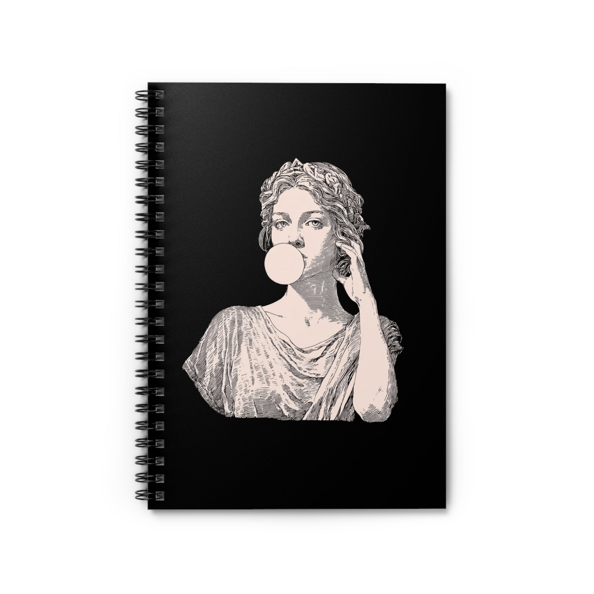 This spiral-bound notebook features the Greek goddess Athena styled with a playful twist—blowing a bubblegum bubble. A perfect blend of history and modern aesthetic, it’s ideal for students, writers, and mythology lovers who appreciate both power and personality.