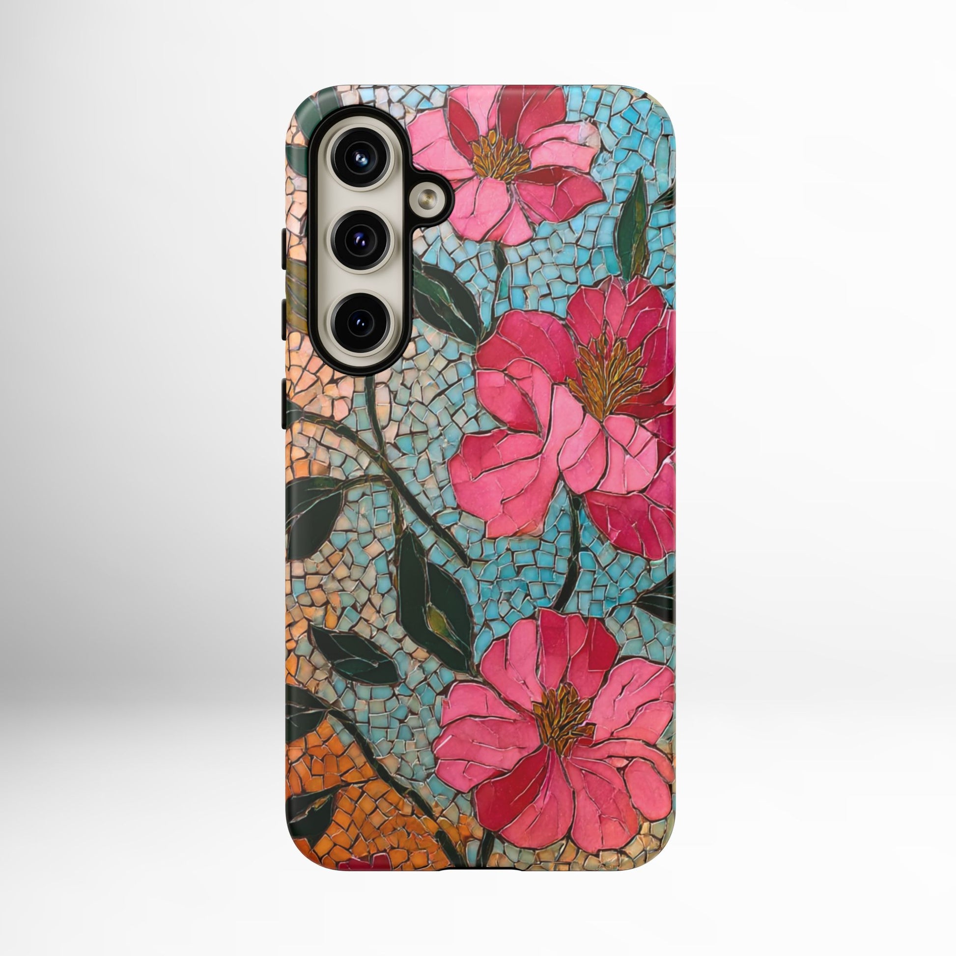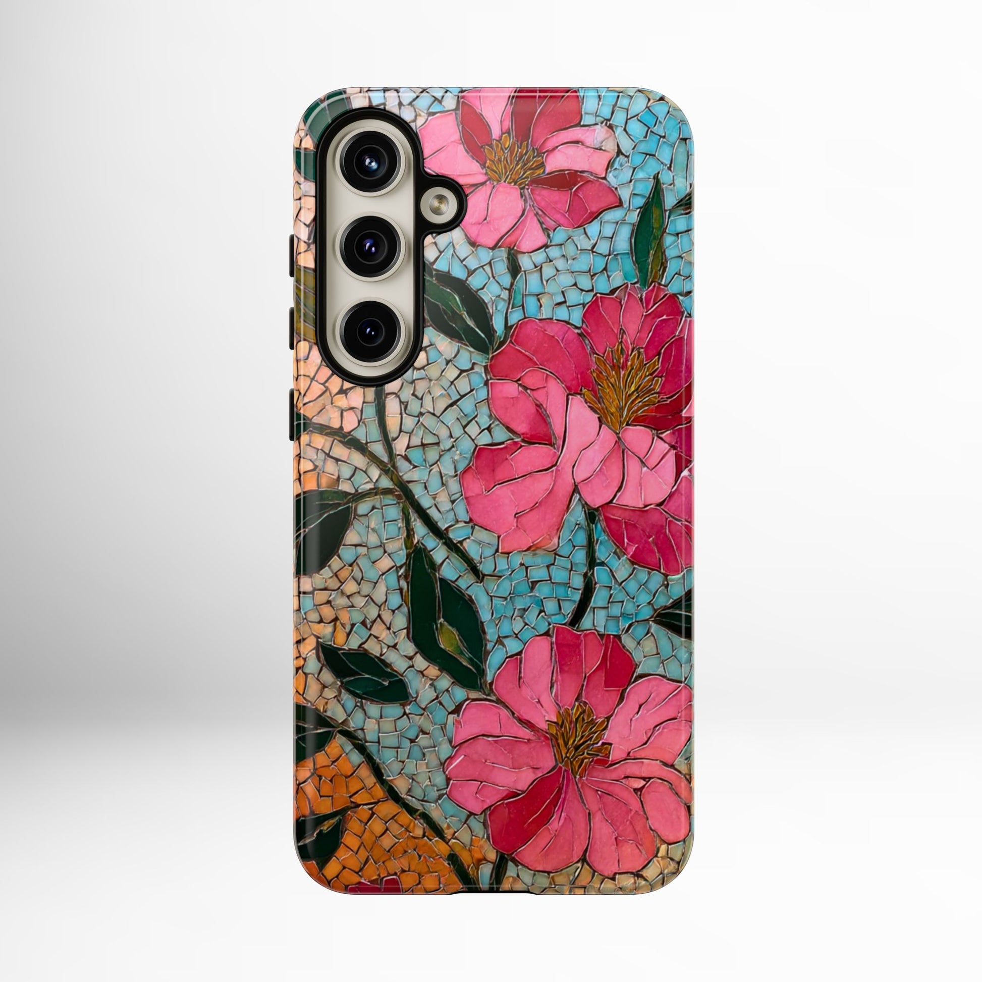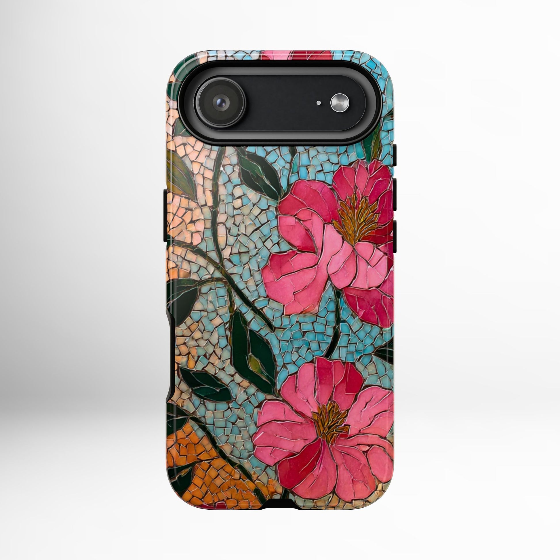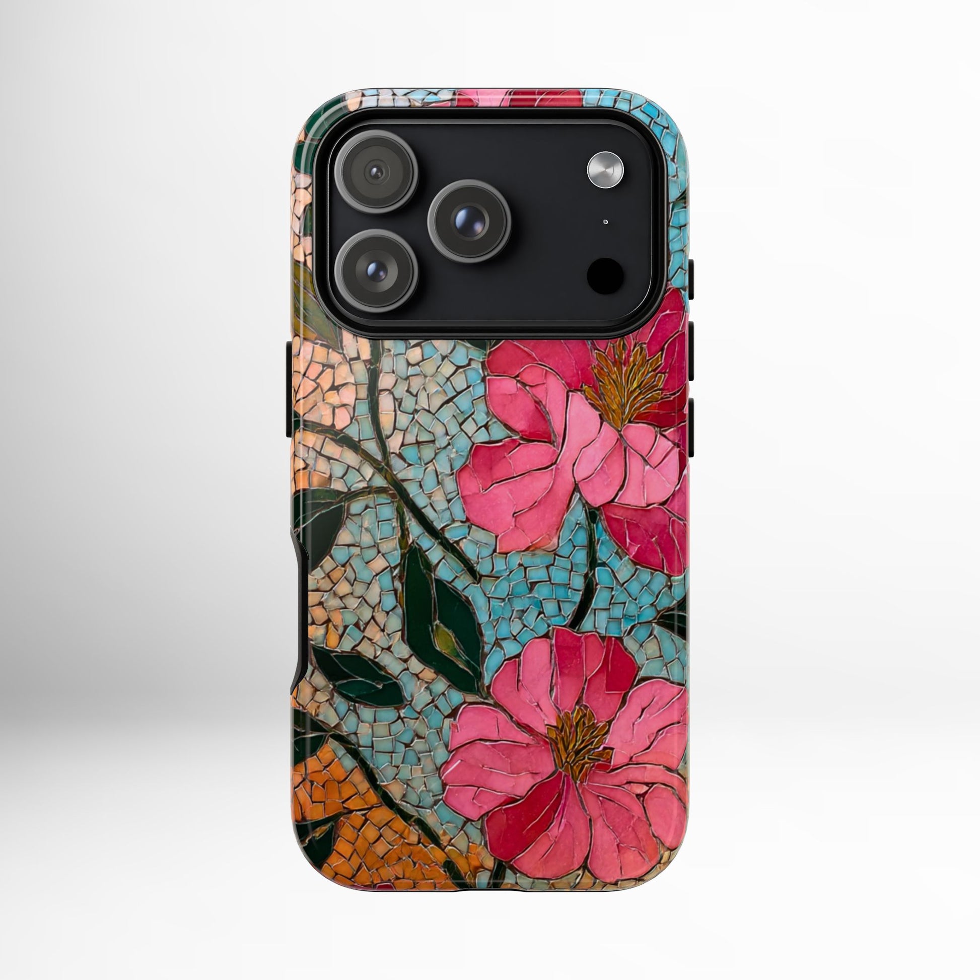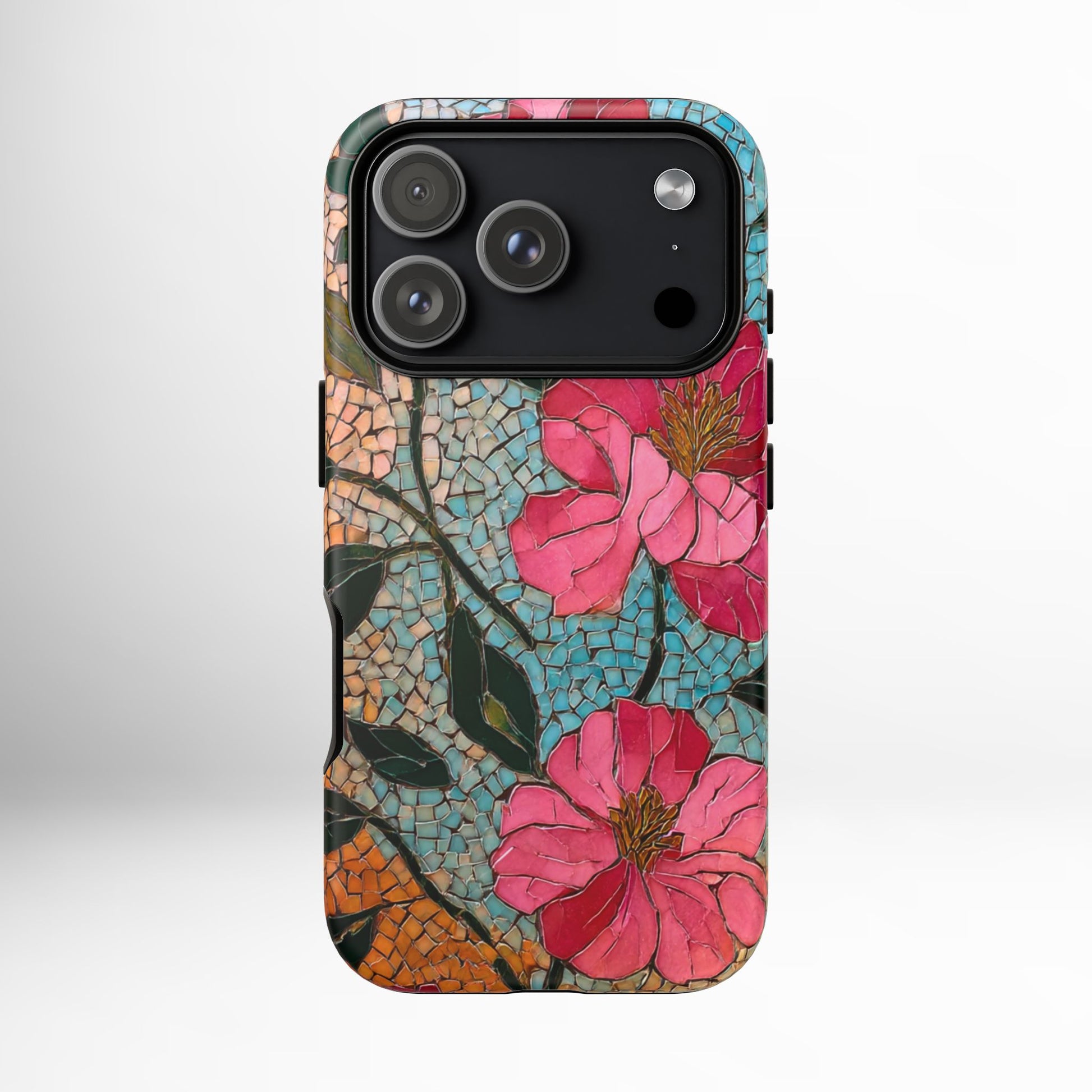 Bright Floral Mosaic Phone Case, iPhone 15 16 17 Pro Air Case, Pixel 9 Pro Cover, Samsung Galaxy 25 Pro Case