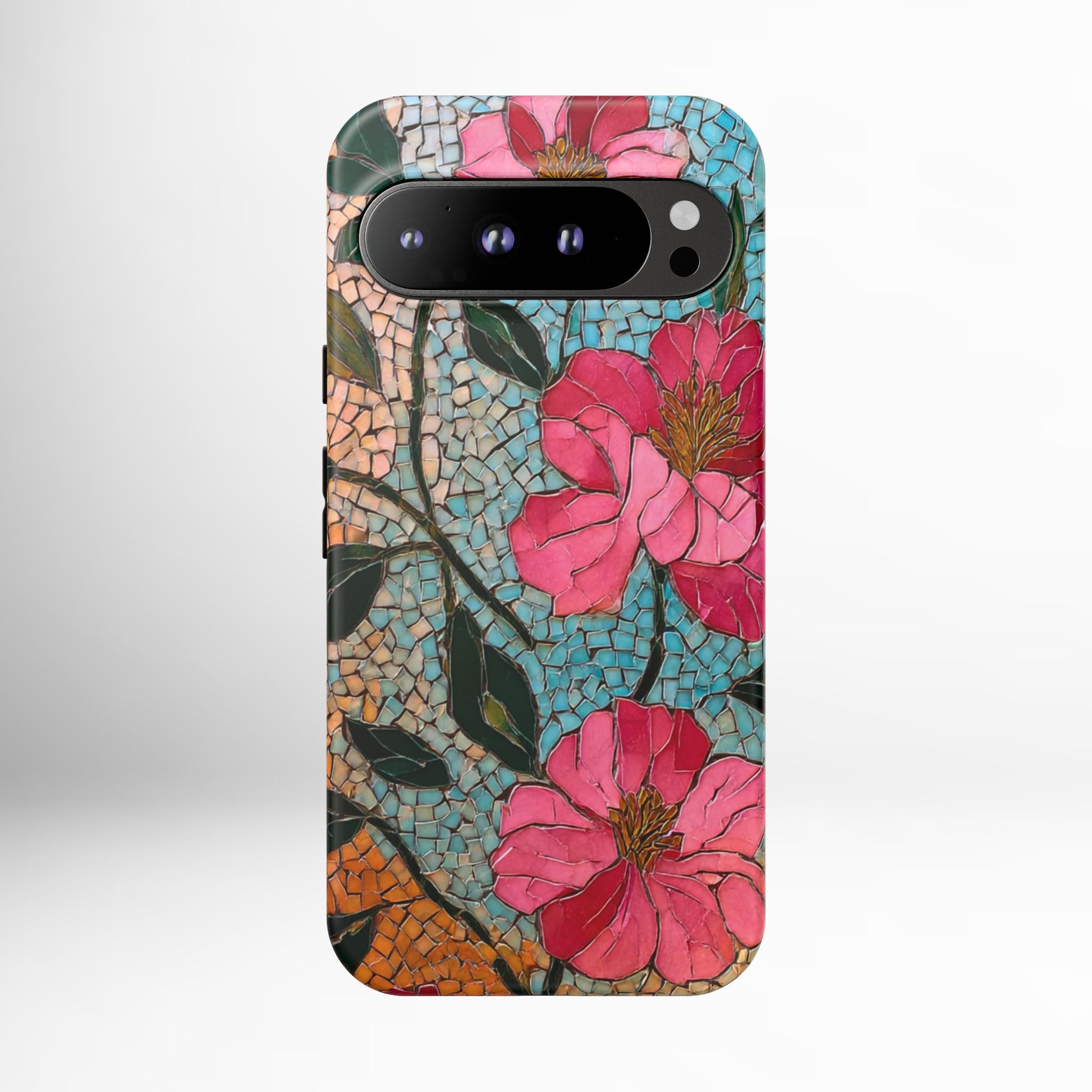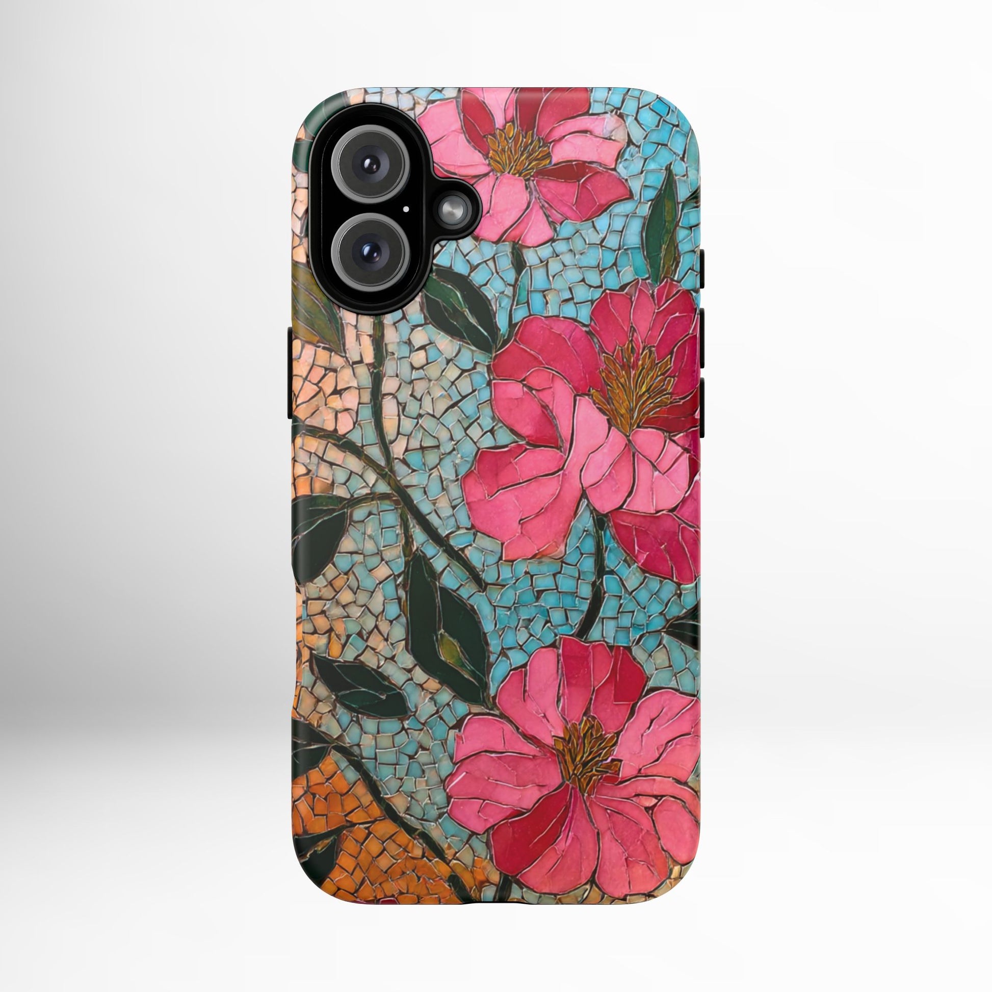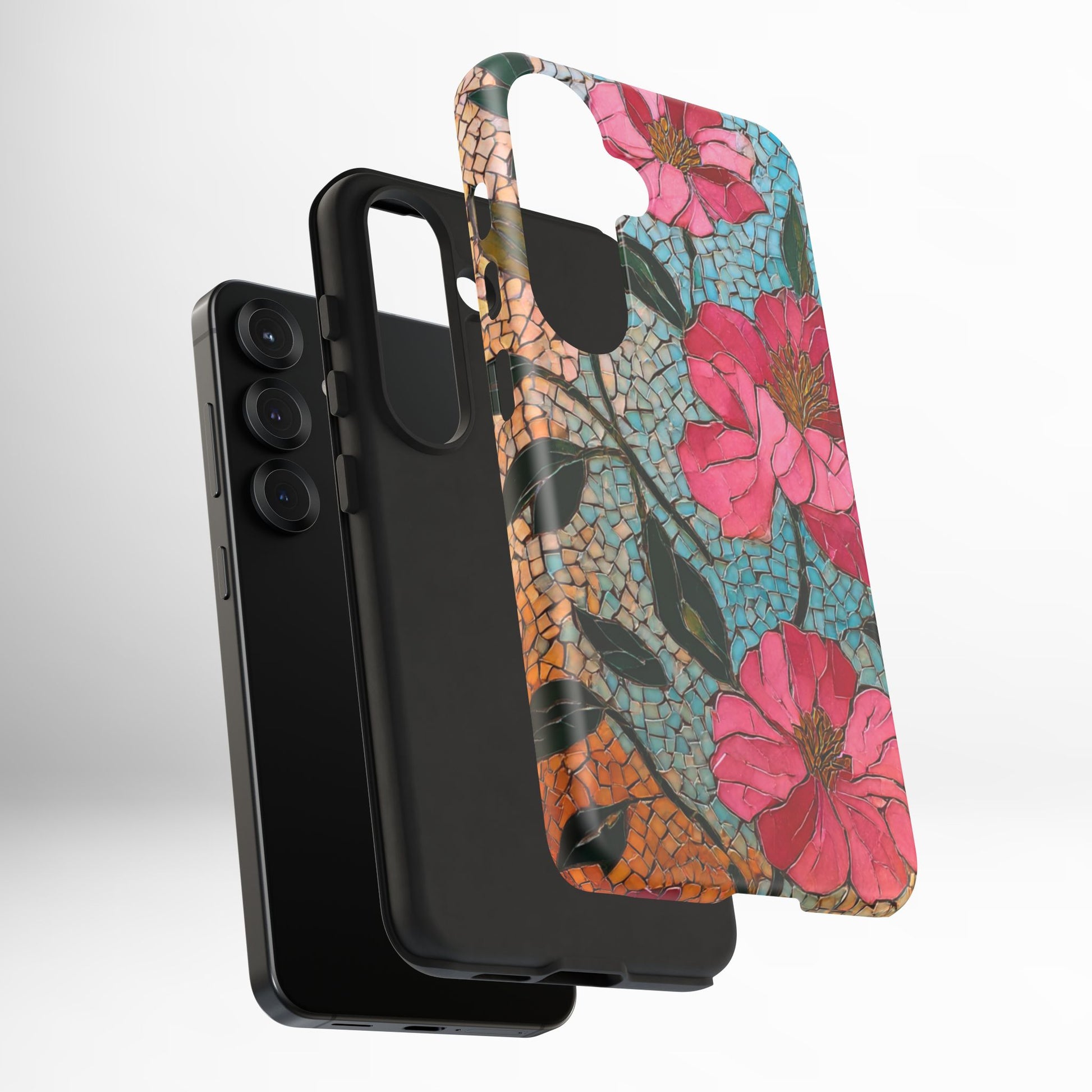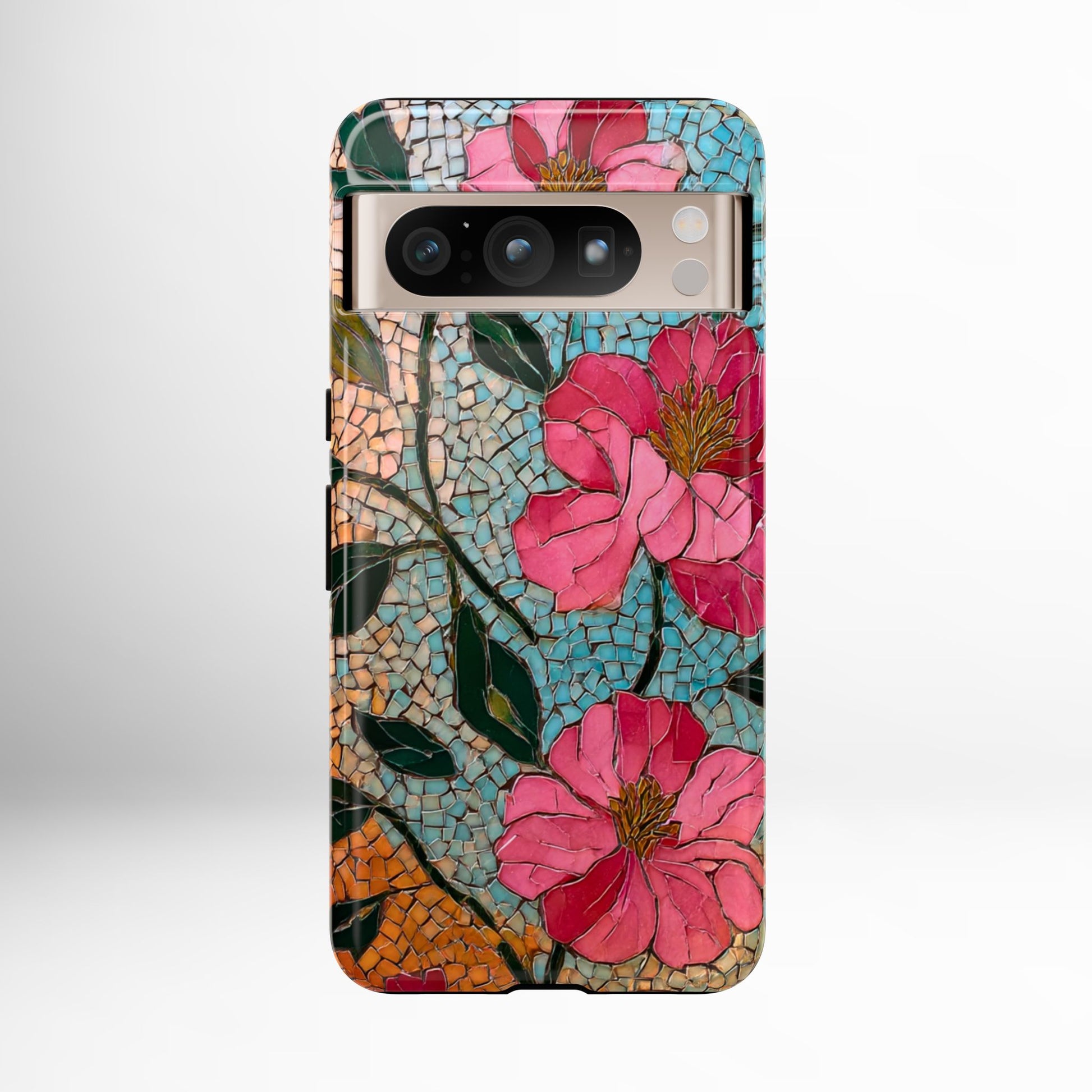 Bright Floral Mosaic Phone Case, iPhone 15 16 17 Pro Air Case, Pixel 9 Pro Cover, Samsung Galaxy 25 Pro Case