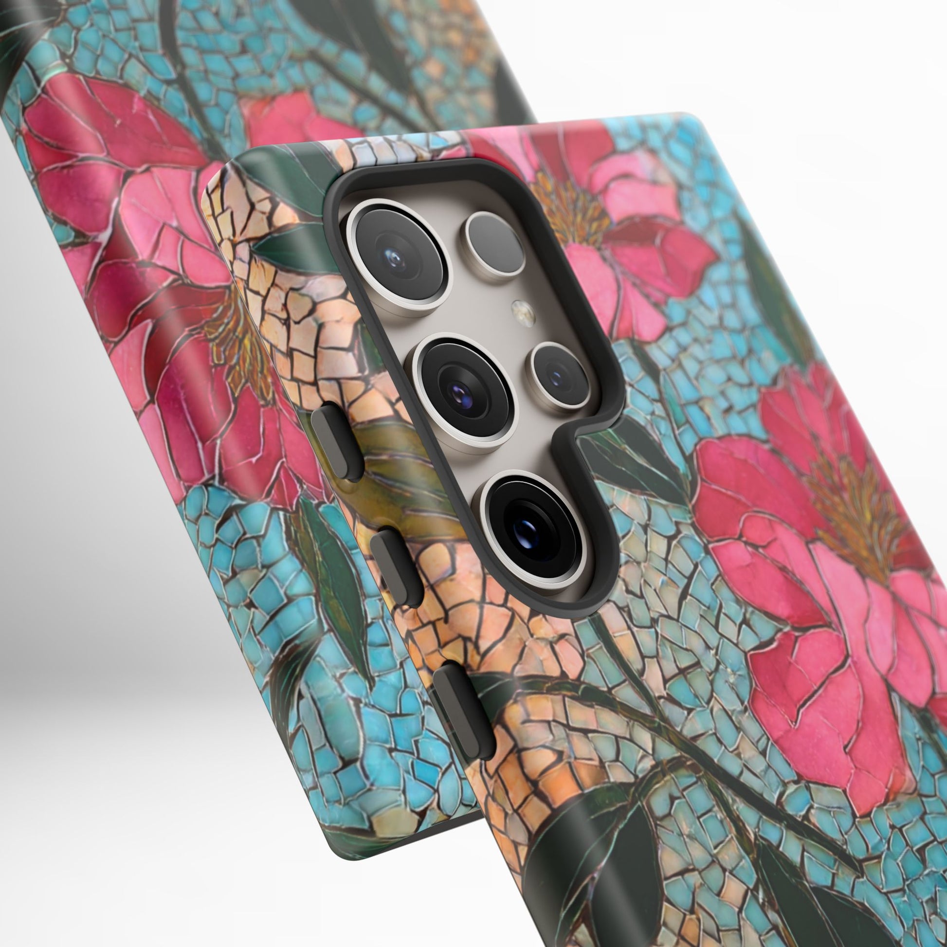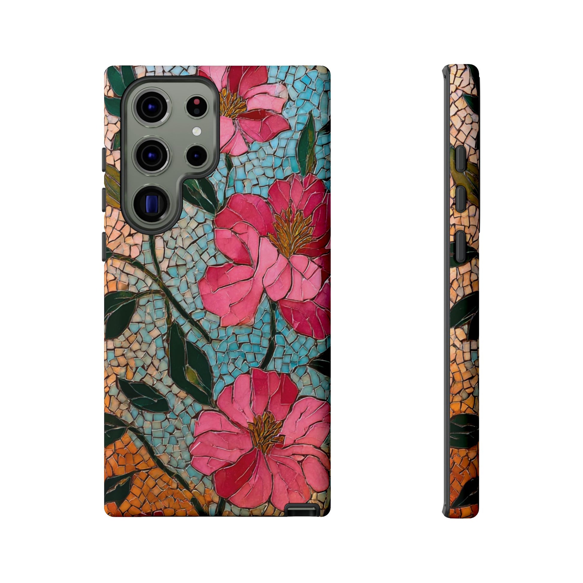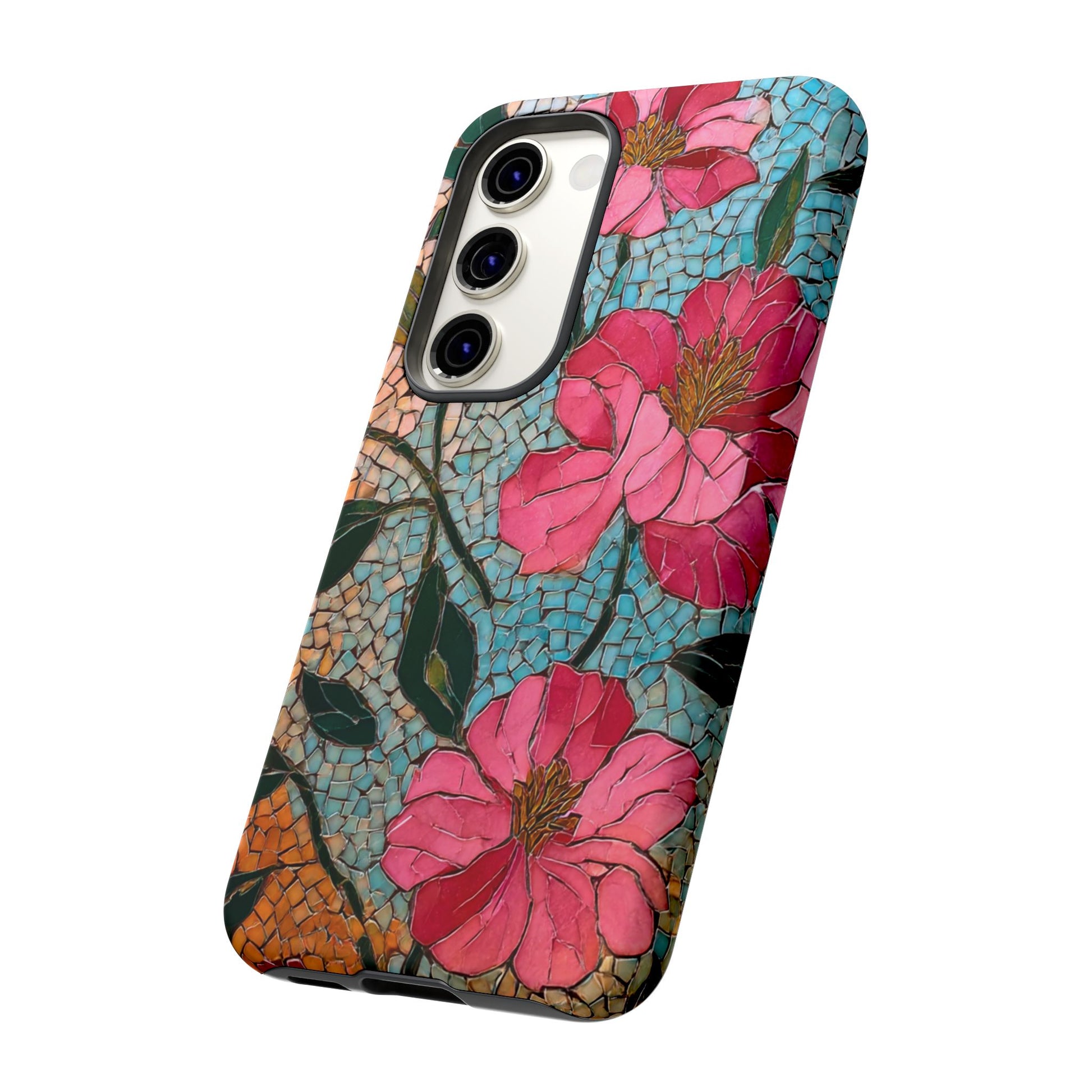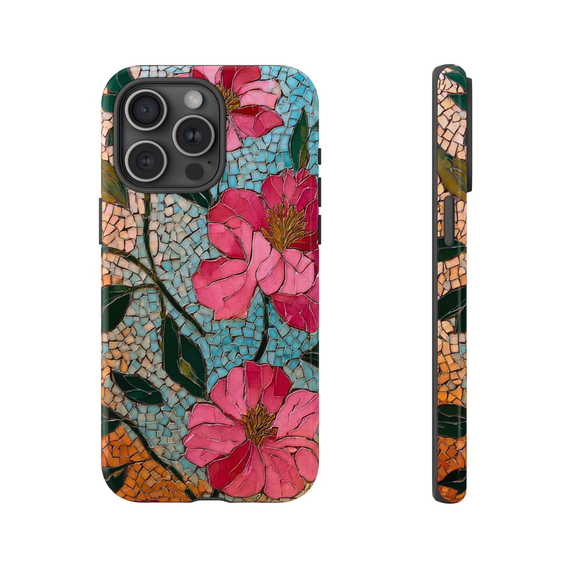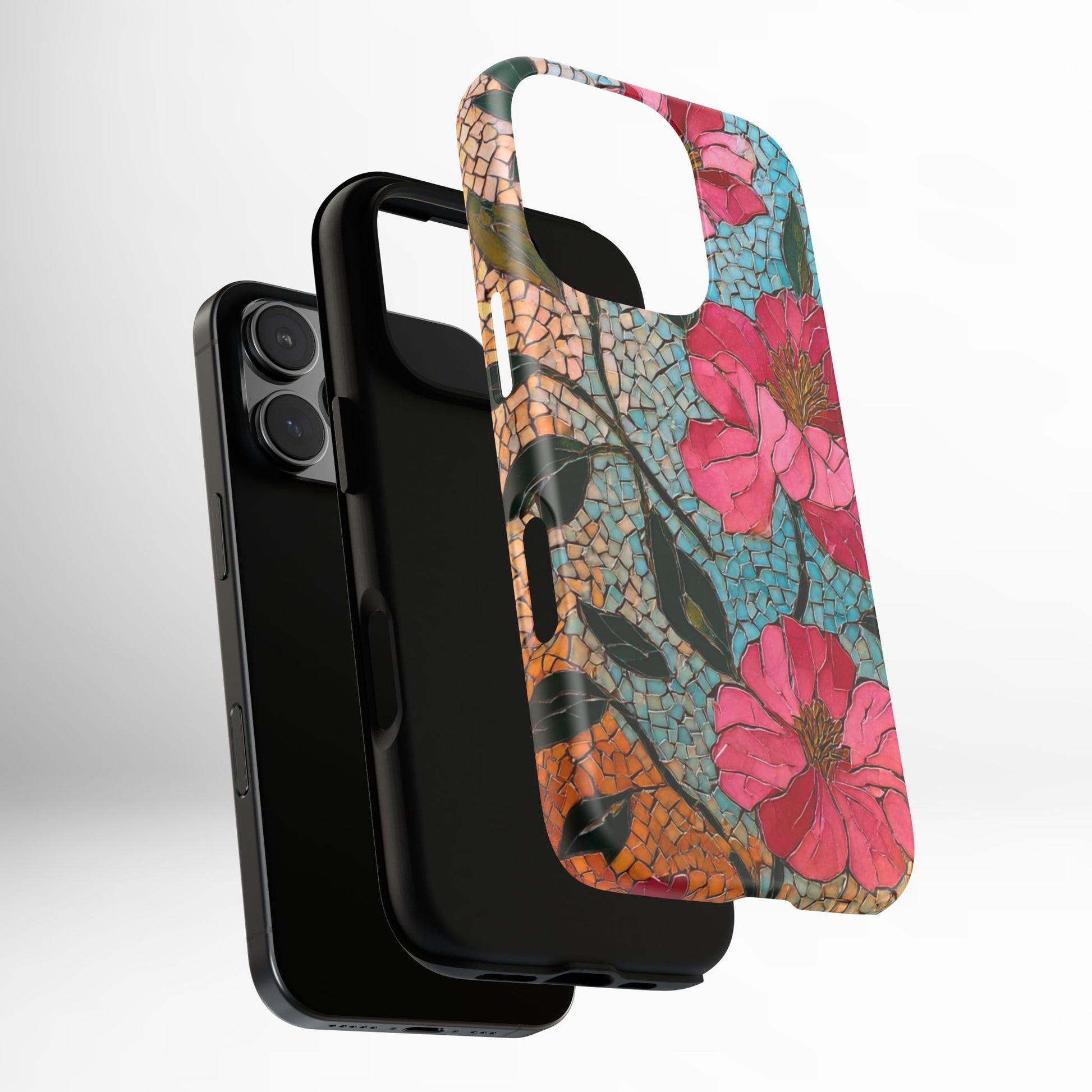 Bright Floral Mosaic Phone Case, iPhone 15 16 17 Pro Air Case, Pixel 9 Pro Cover, Samsung Galaxy 25 Pro Case