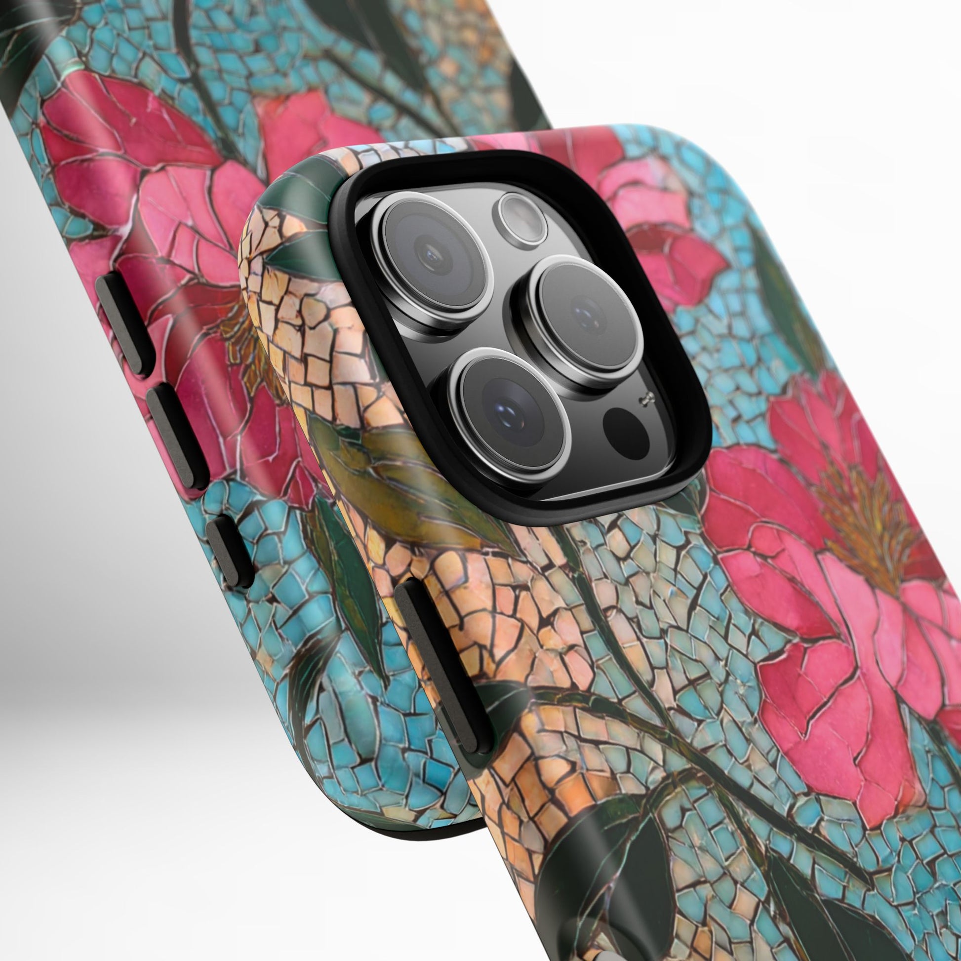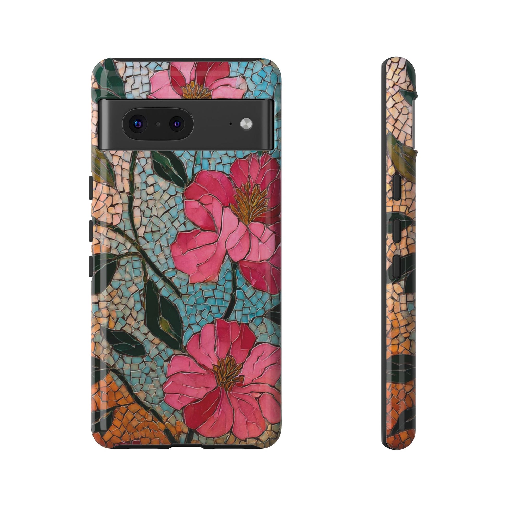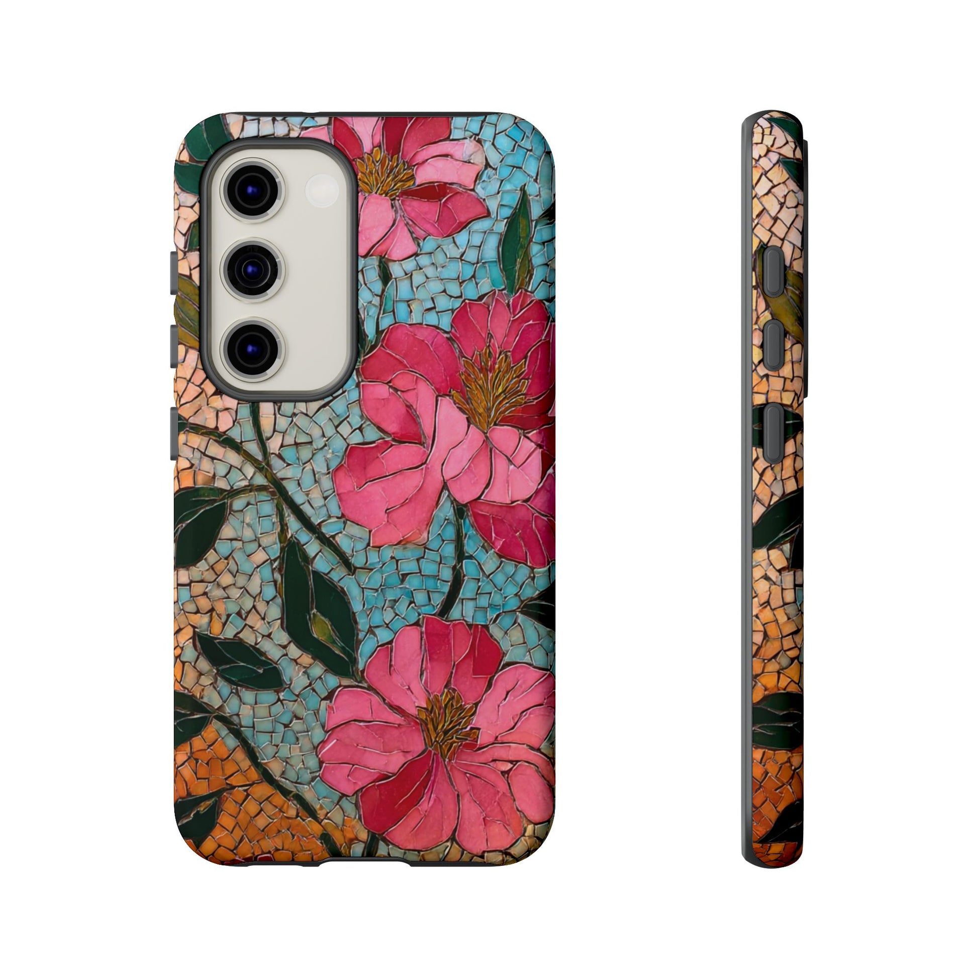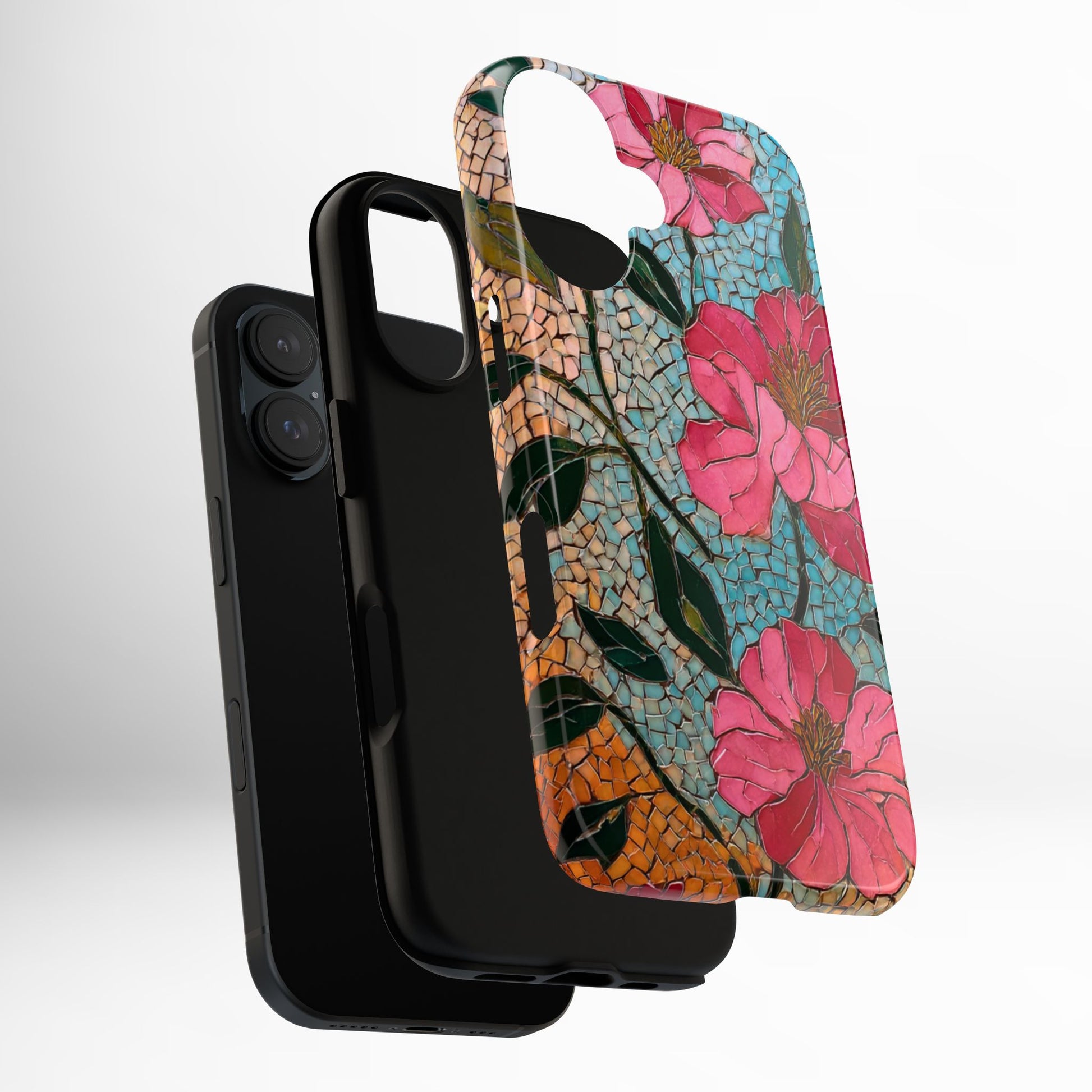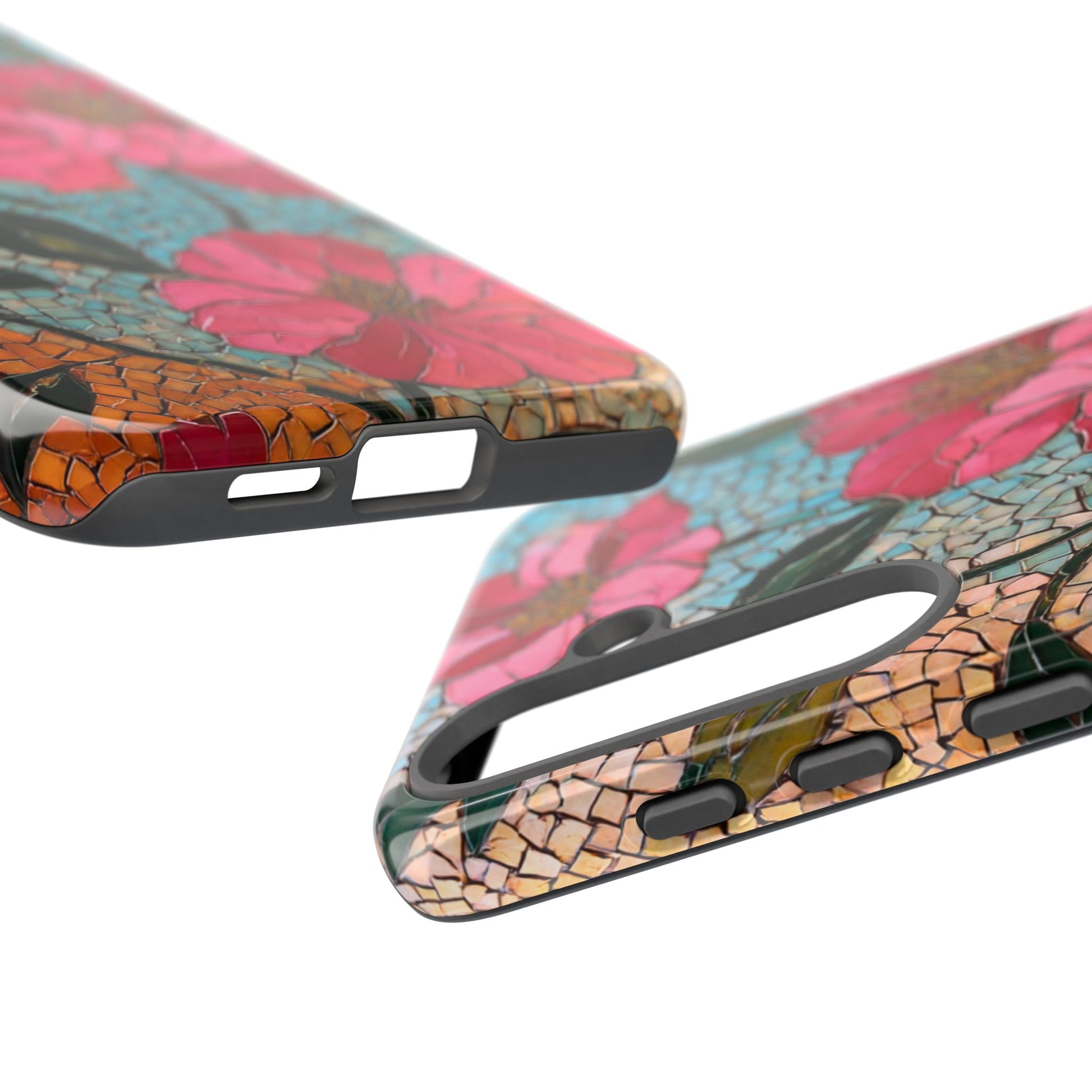 Bright Floral Mosaic Phone Case, iPhone 15 16 17 Pro Air Case, Pixel 9 Pro Cover, Samsung Galaxy 25 Pro Case