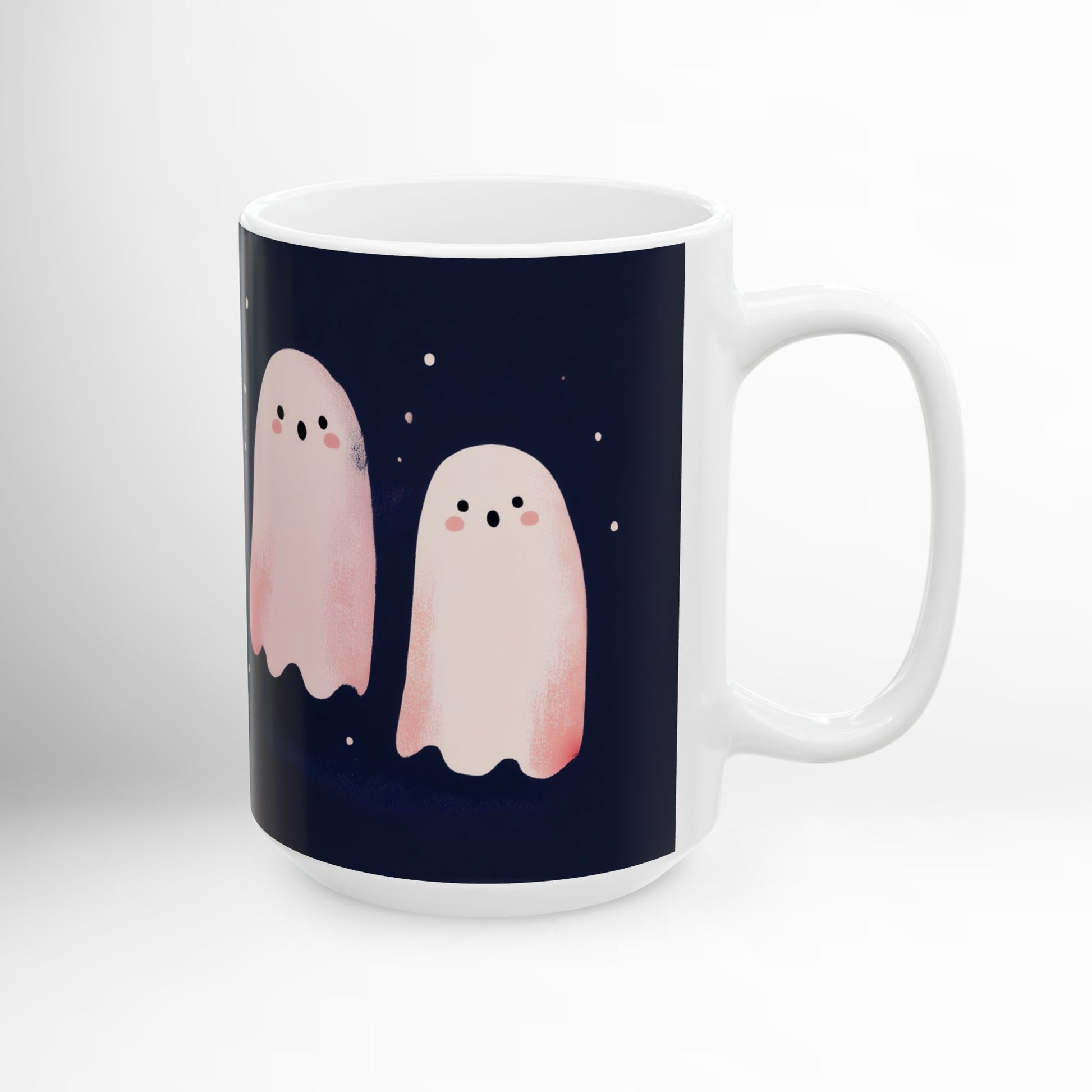 Cute Ghosts Mug Pastel Halloween Ceramic Coffee Cup, Kawaii Spooky Season Drinkware, Ghost Lover Gift 11oz & 15oz