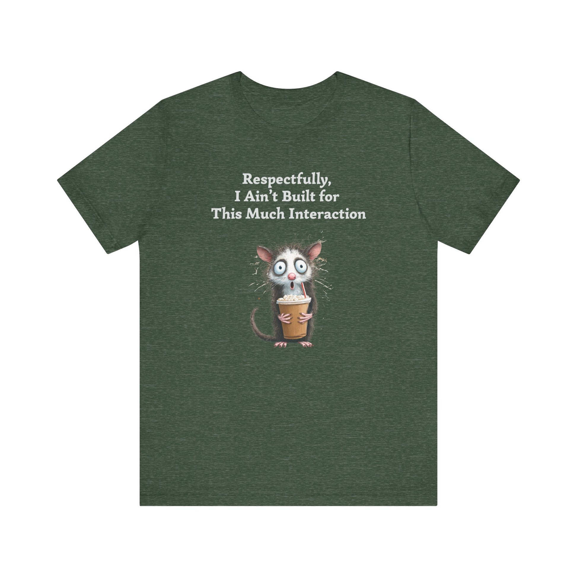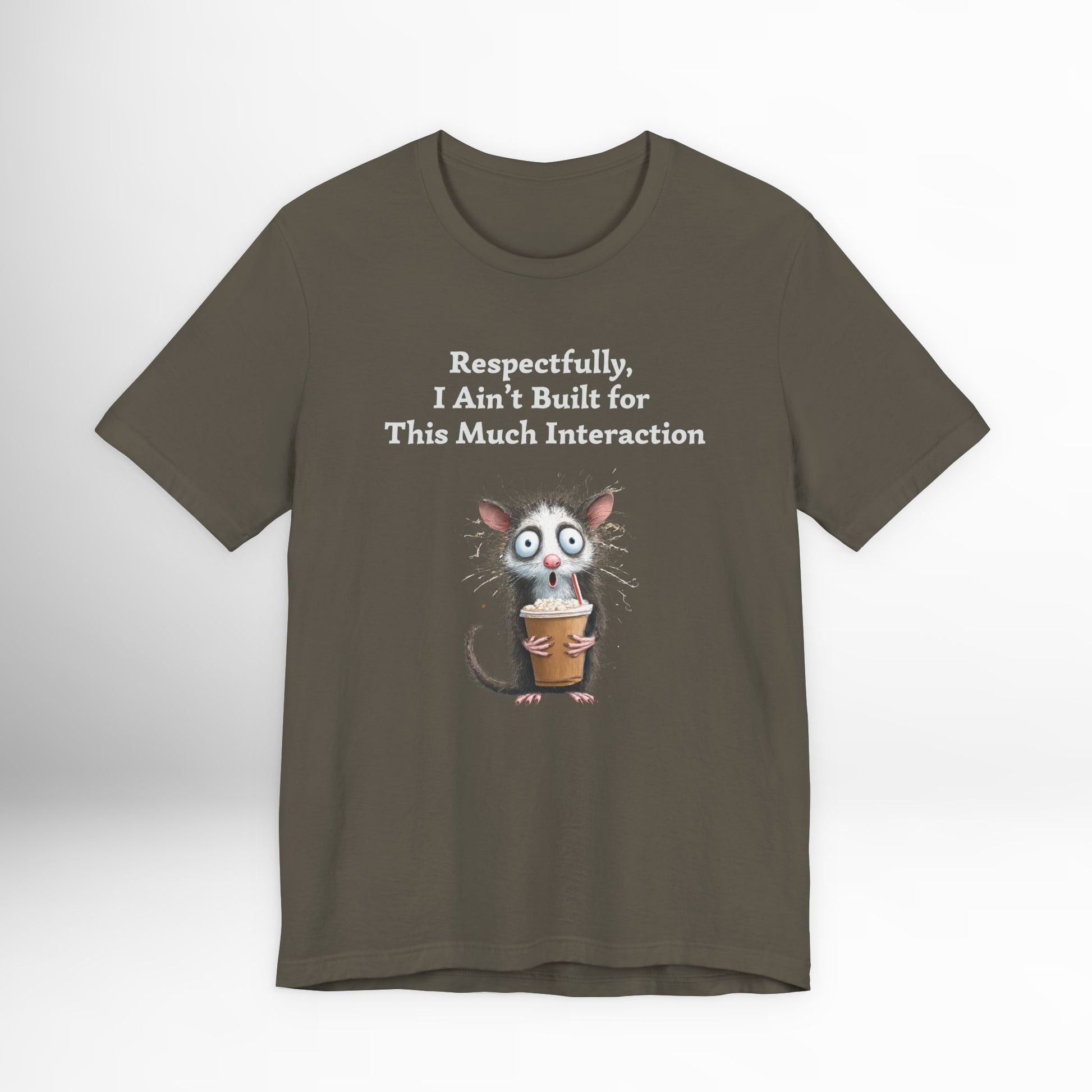 Funny Possum T-Shirt | Respectfully I Aint Built For This Much Interaction Tee | Introvert Humor Shirt | Quirky Animal Graphic Top