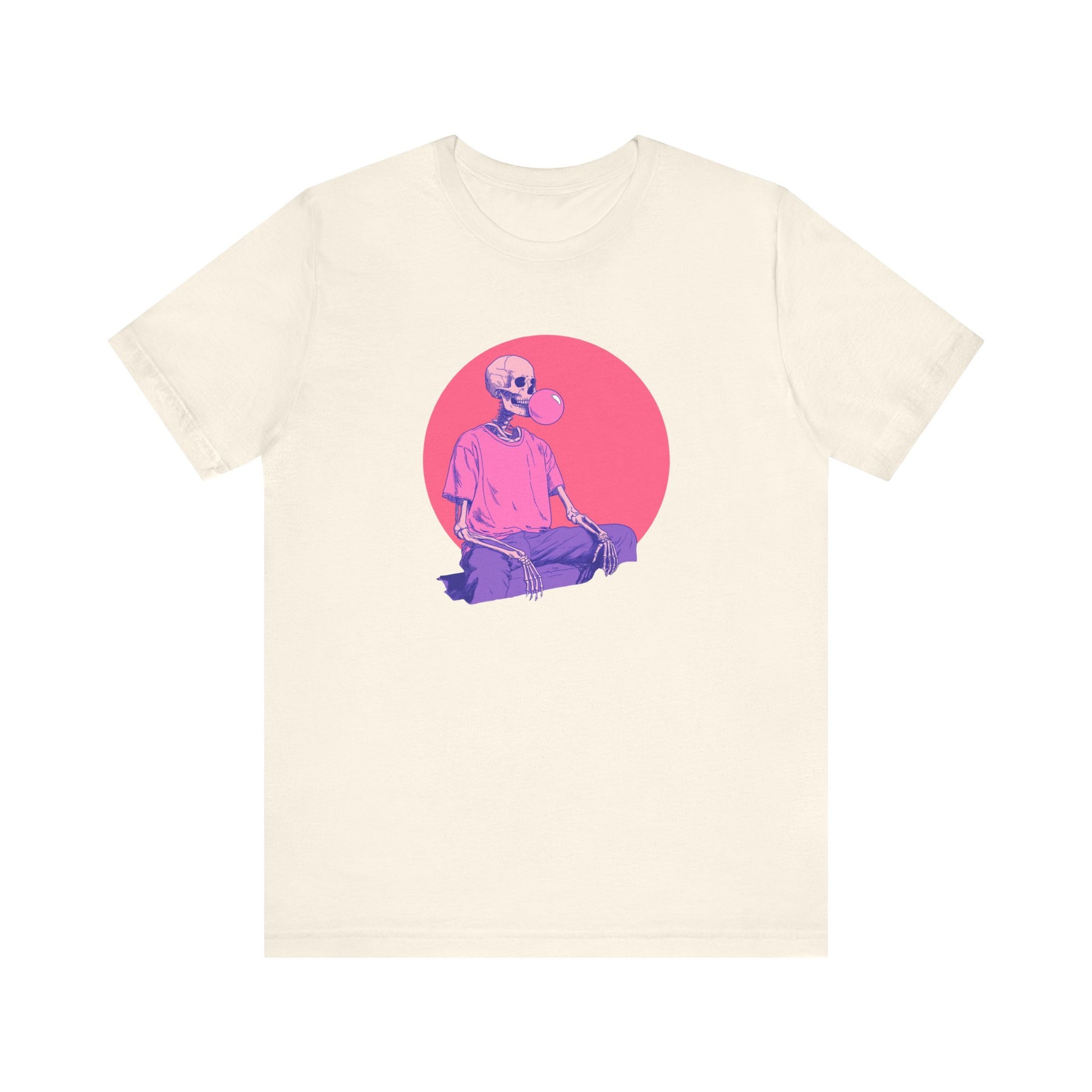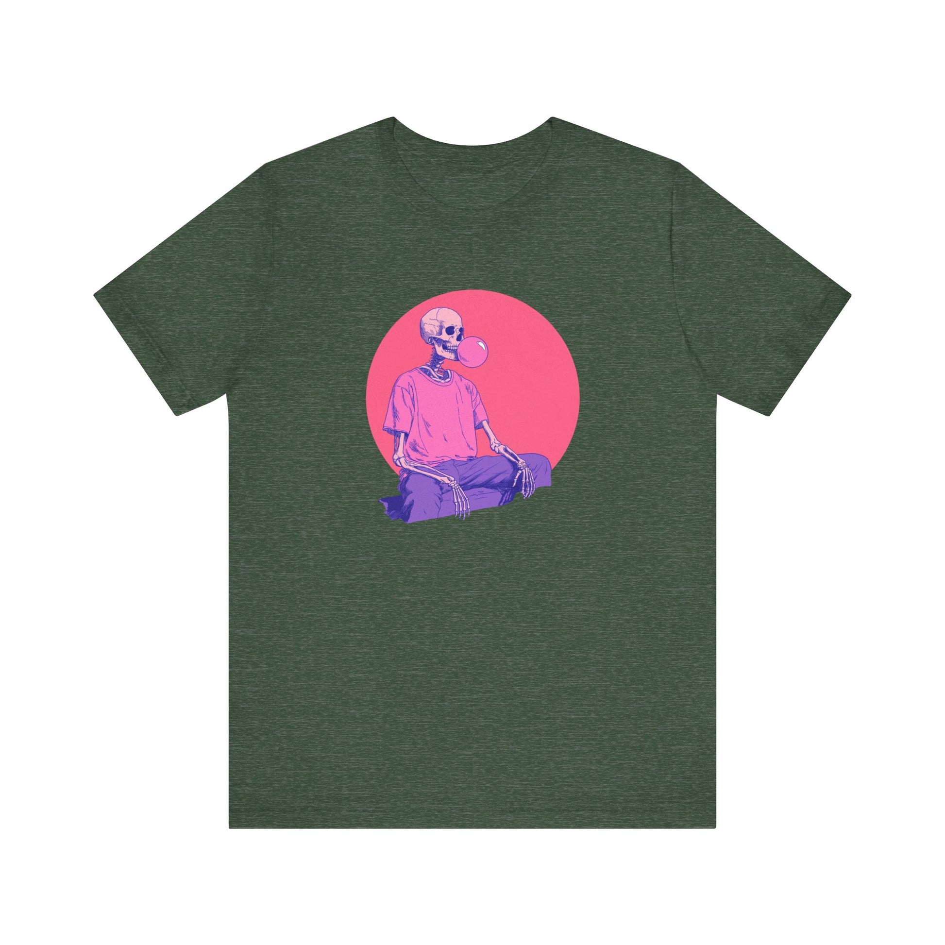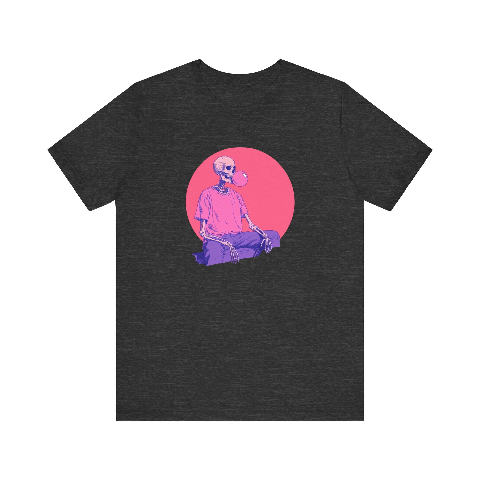 This Halloween-ready t-shirt features a playful skeleton blowing bubblegum—a fun, edgy twist on classic spooky season style. Perfect for those who love gothic vibes, alt fashion, or just want something witty and wearable all fall long.