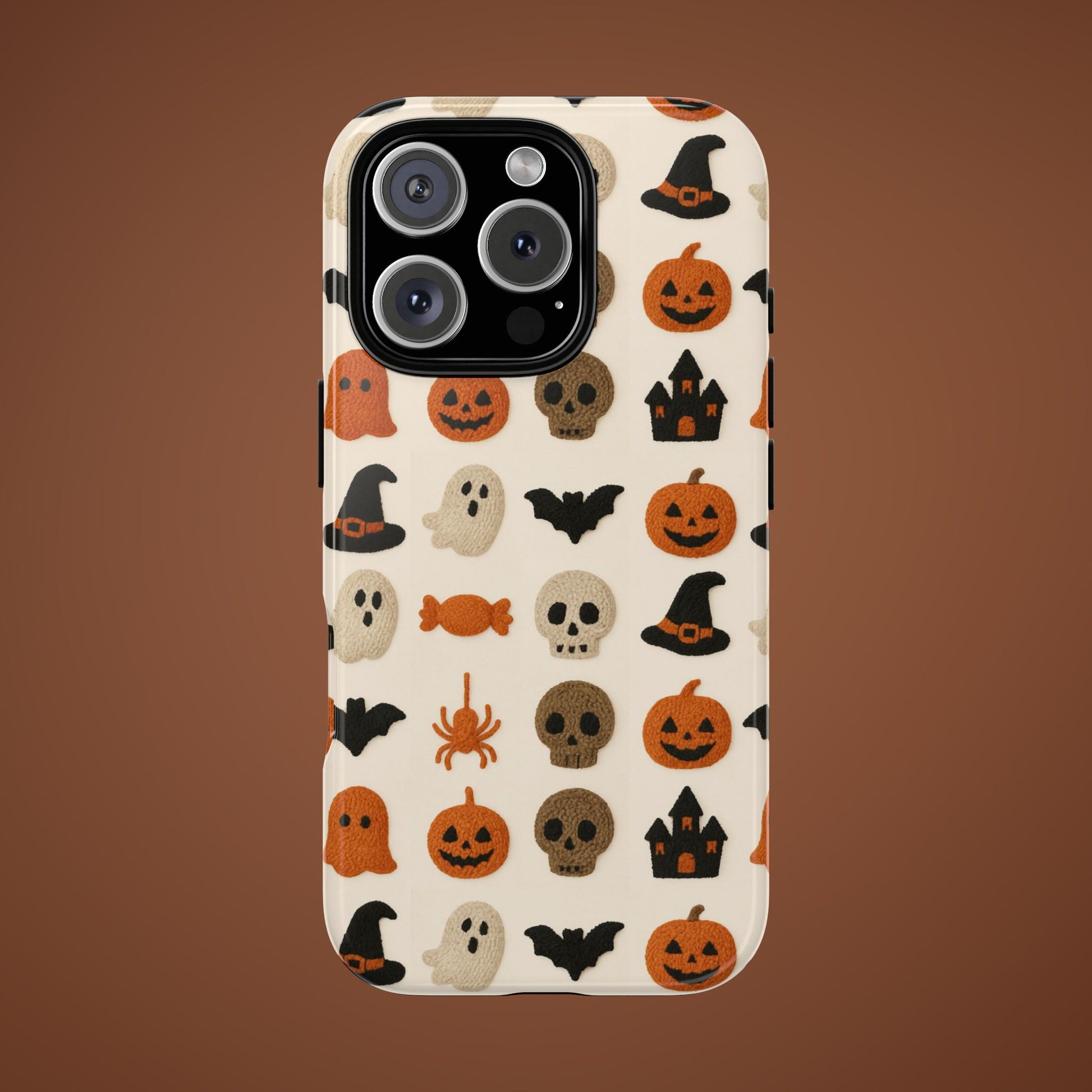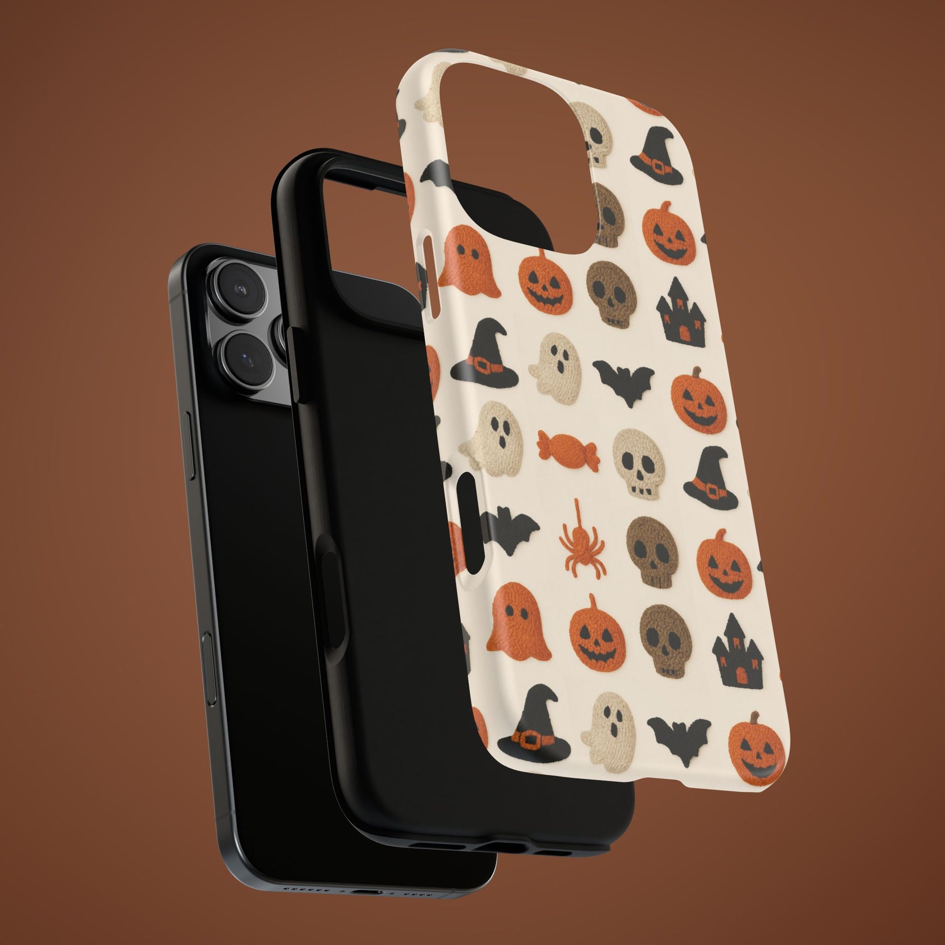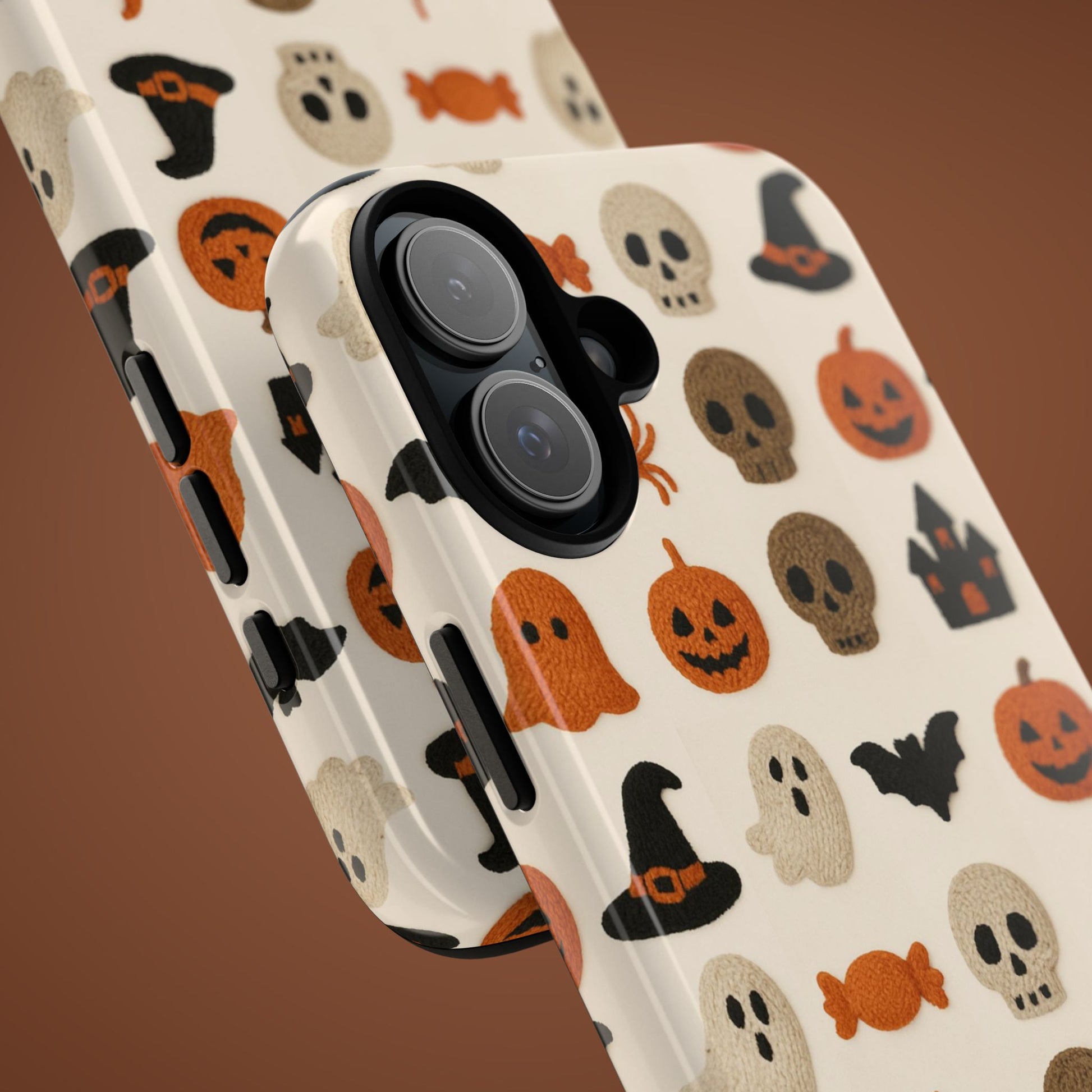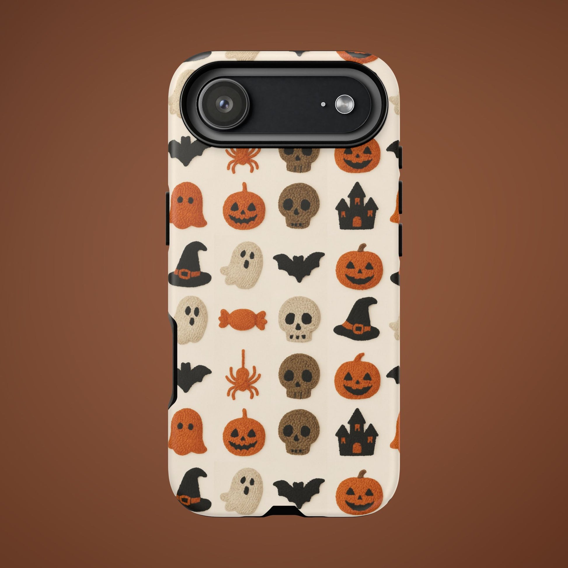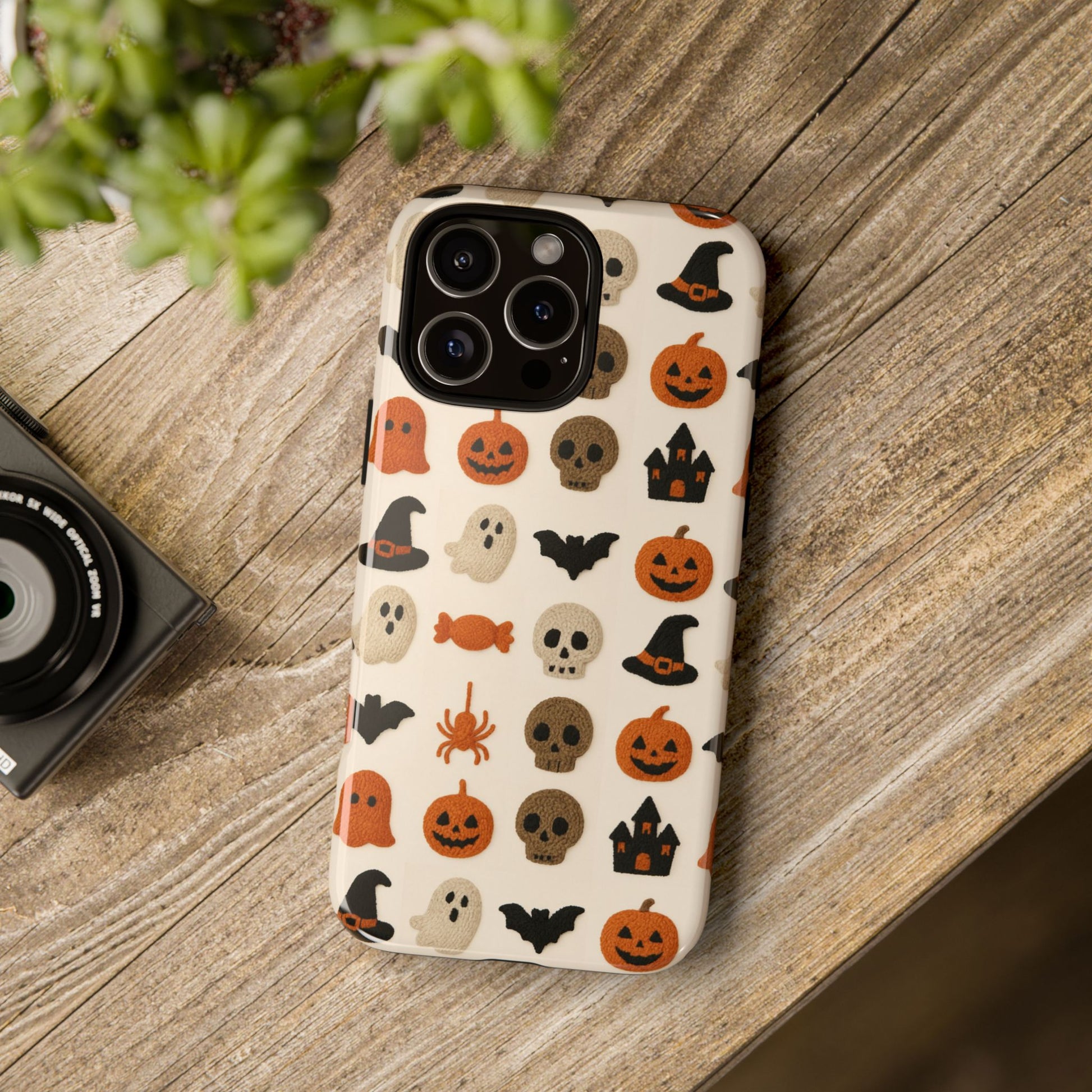 Celebrate spooky season all year round with this Halloween Phone Case featuring a playful pattern of ghosts, pumpkins, bats, cats, and spiders. The cute and spooky design adds festive flair while keeping your phone protected from scratches and bumps. Made with a slim durable shell, this case blends style and protection for everyday use.