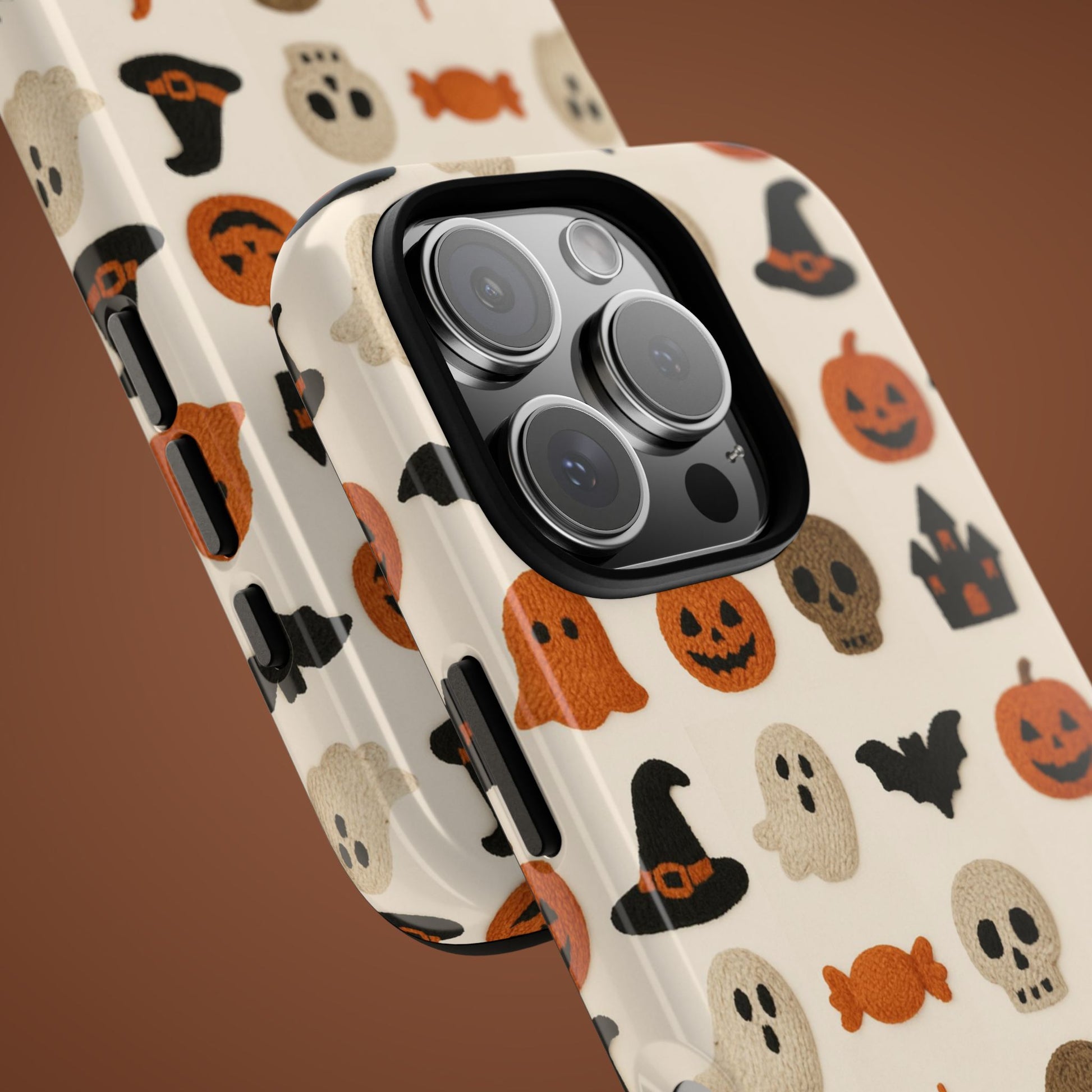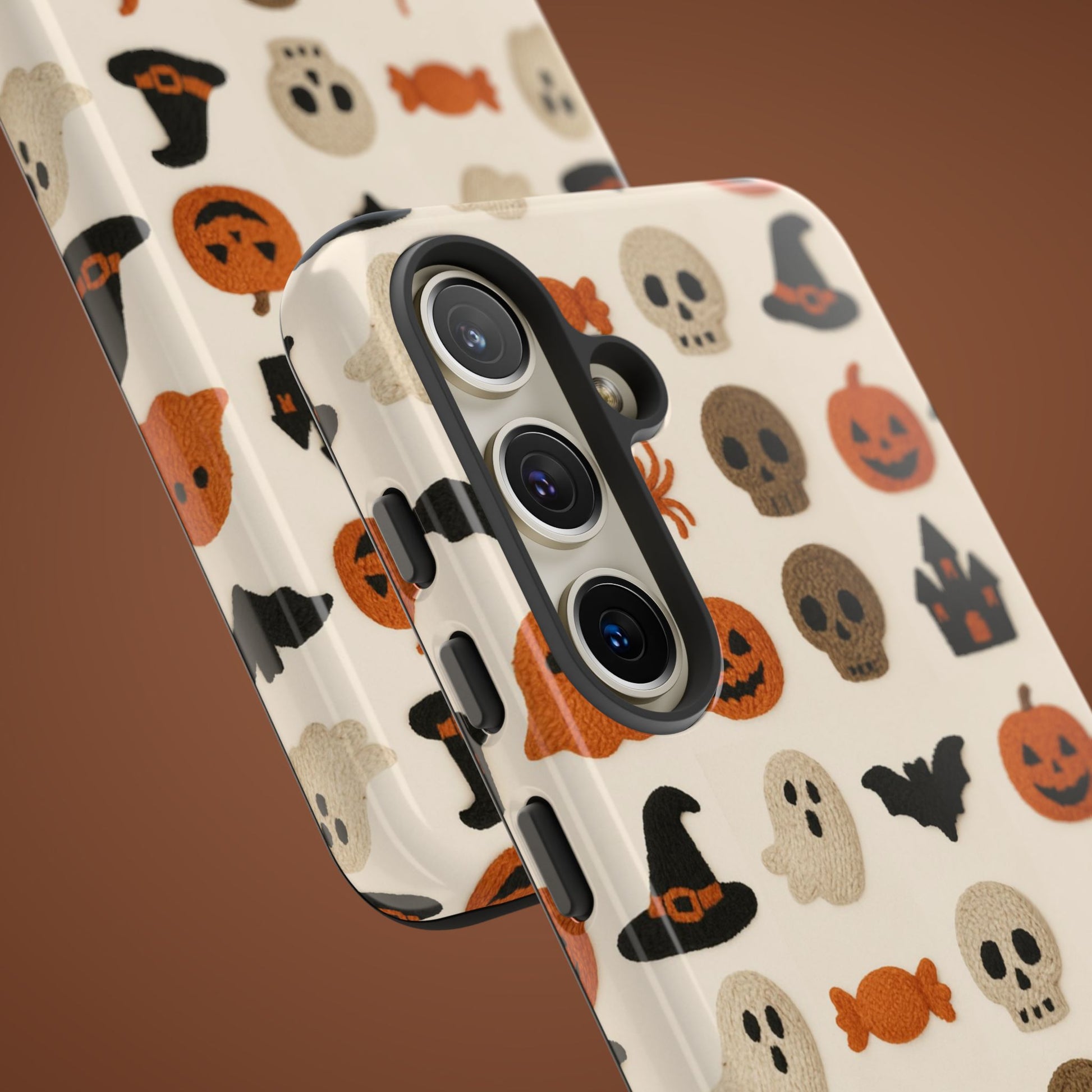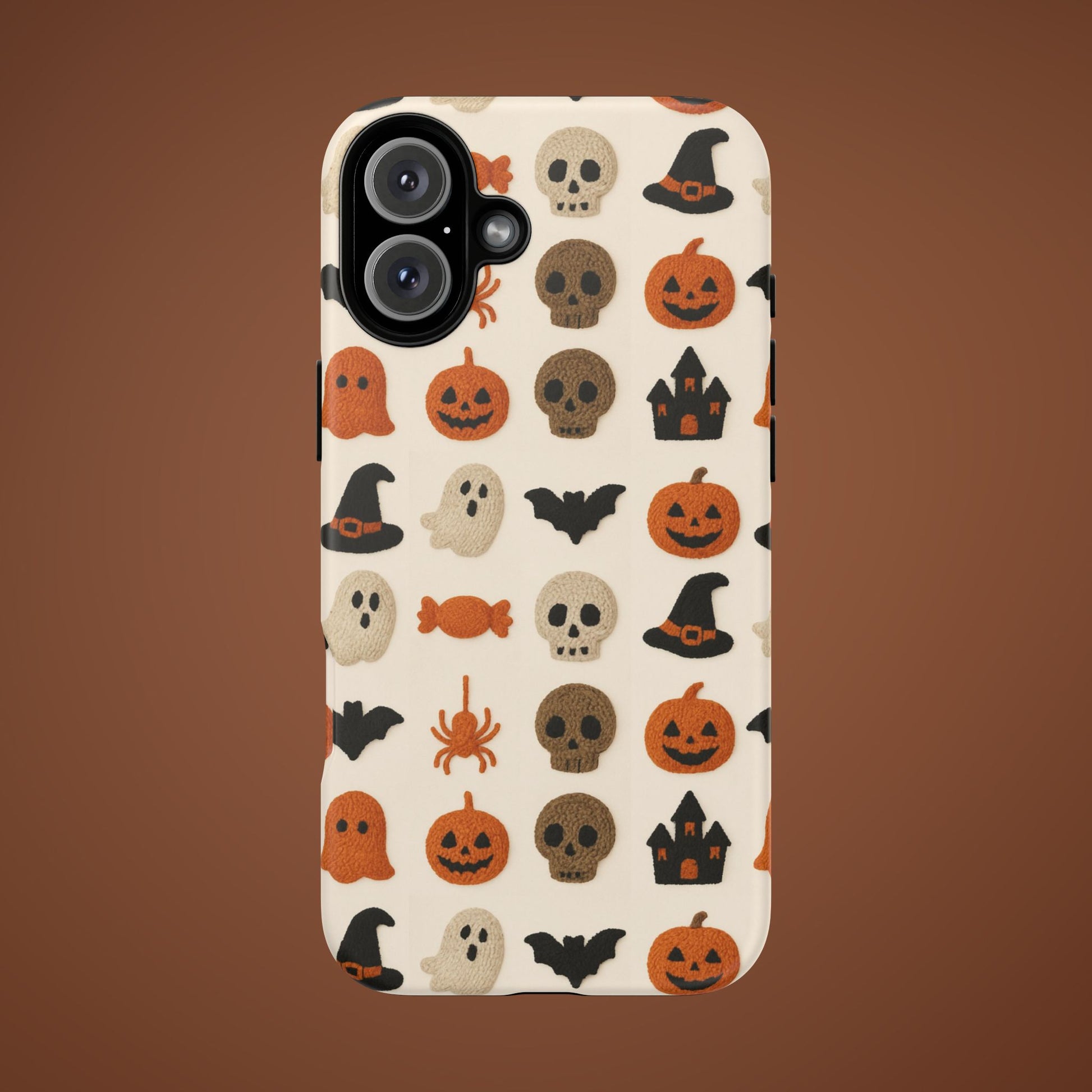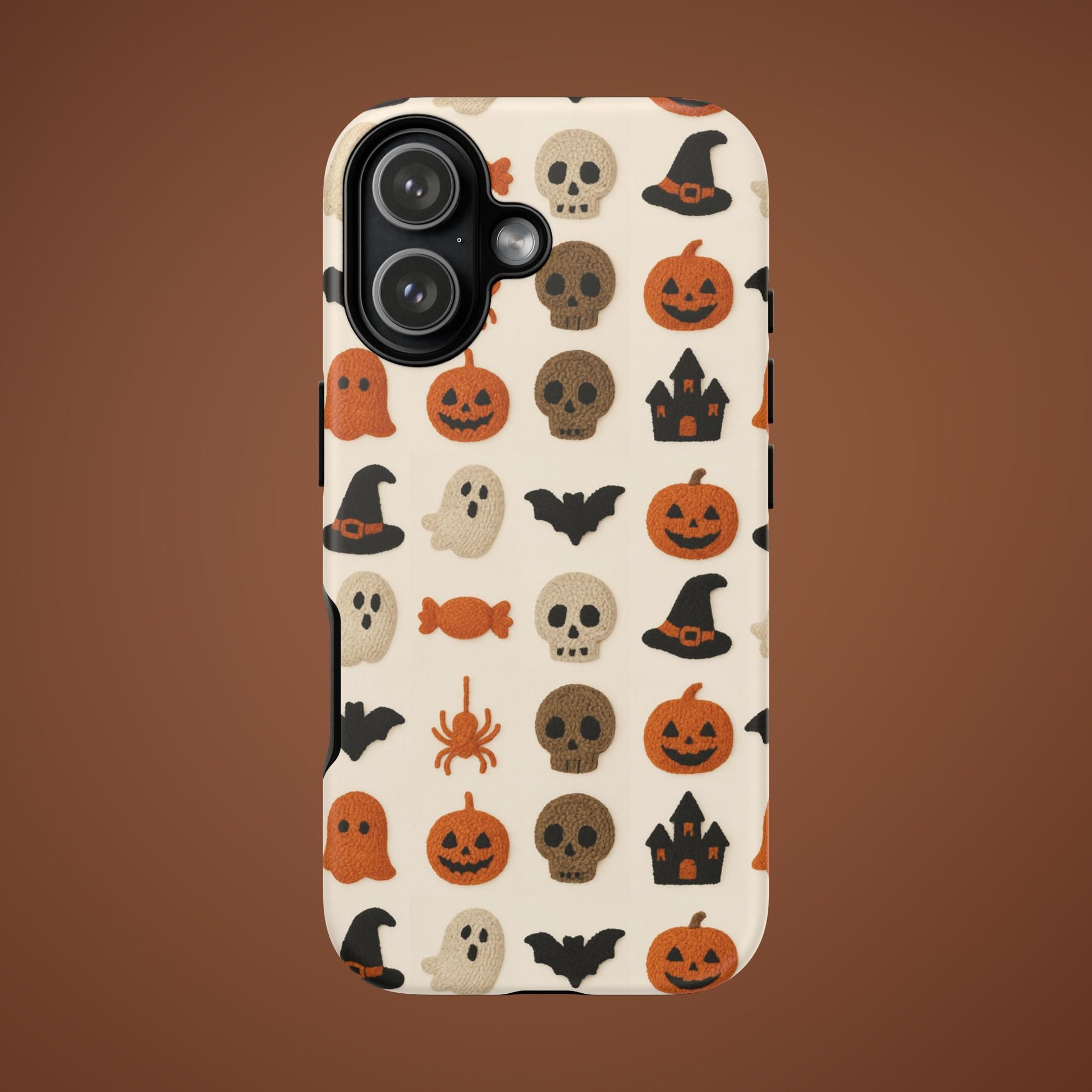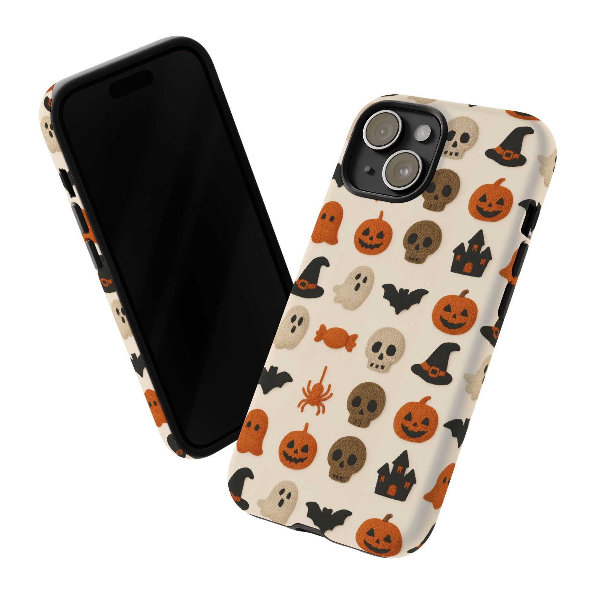 Celebrate spooky season all year round with this Halloween Phone Case featuring a playful pattern of ghosts, pumpkins, bats, cats, and spiders. The cute and spooky design adds festive flair while keeping your phone protected from scratches and bumps. Made with a slim durable shell, this case blends style and protection for everyday use.