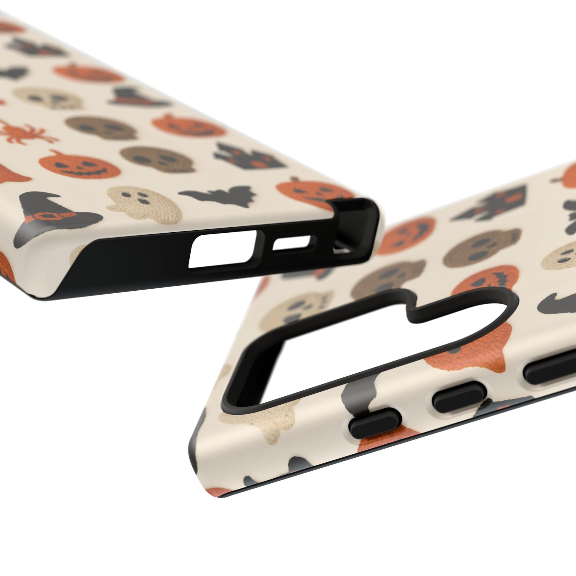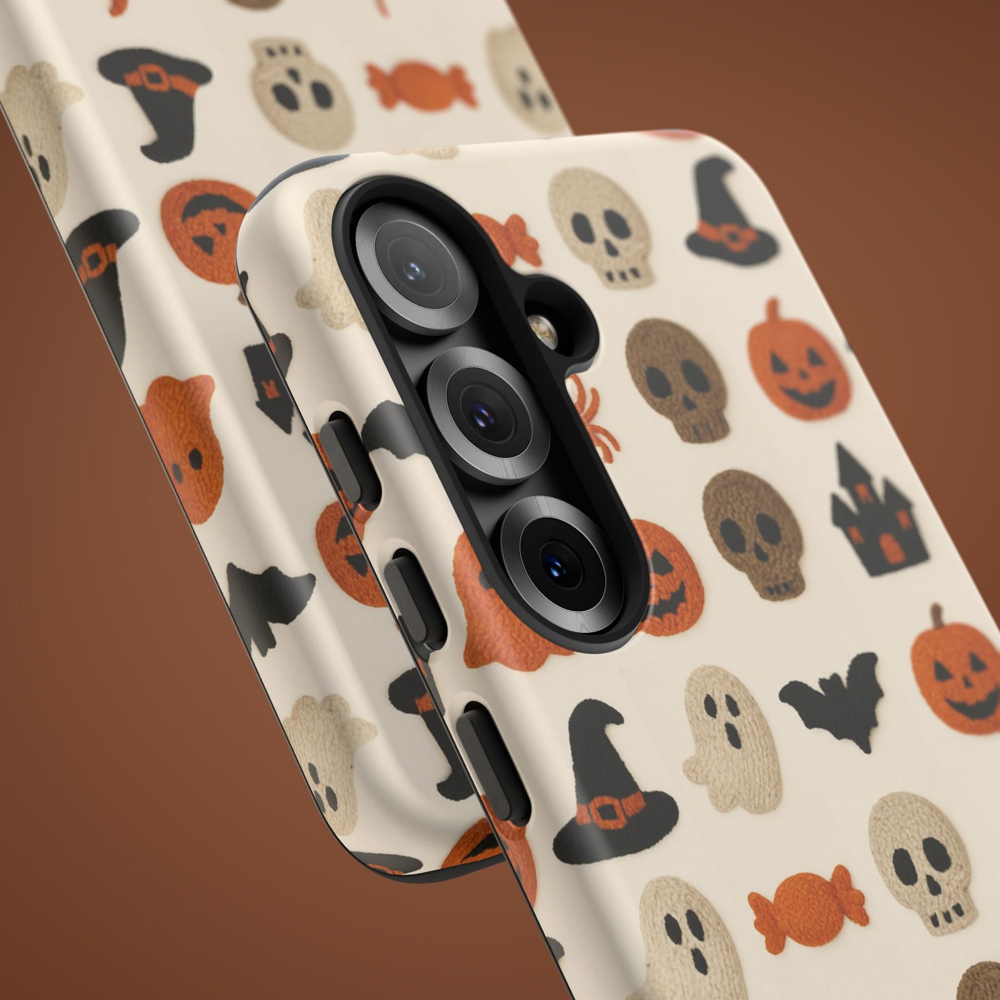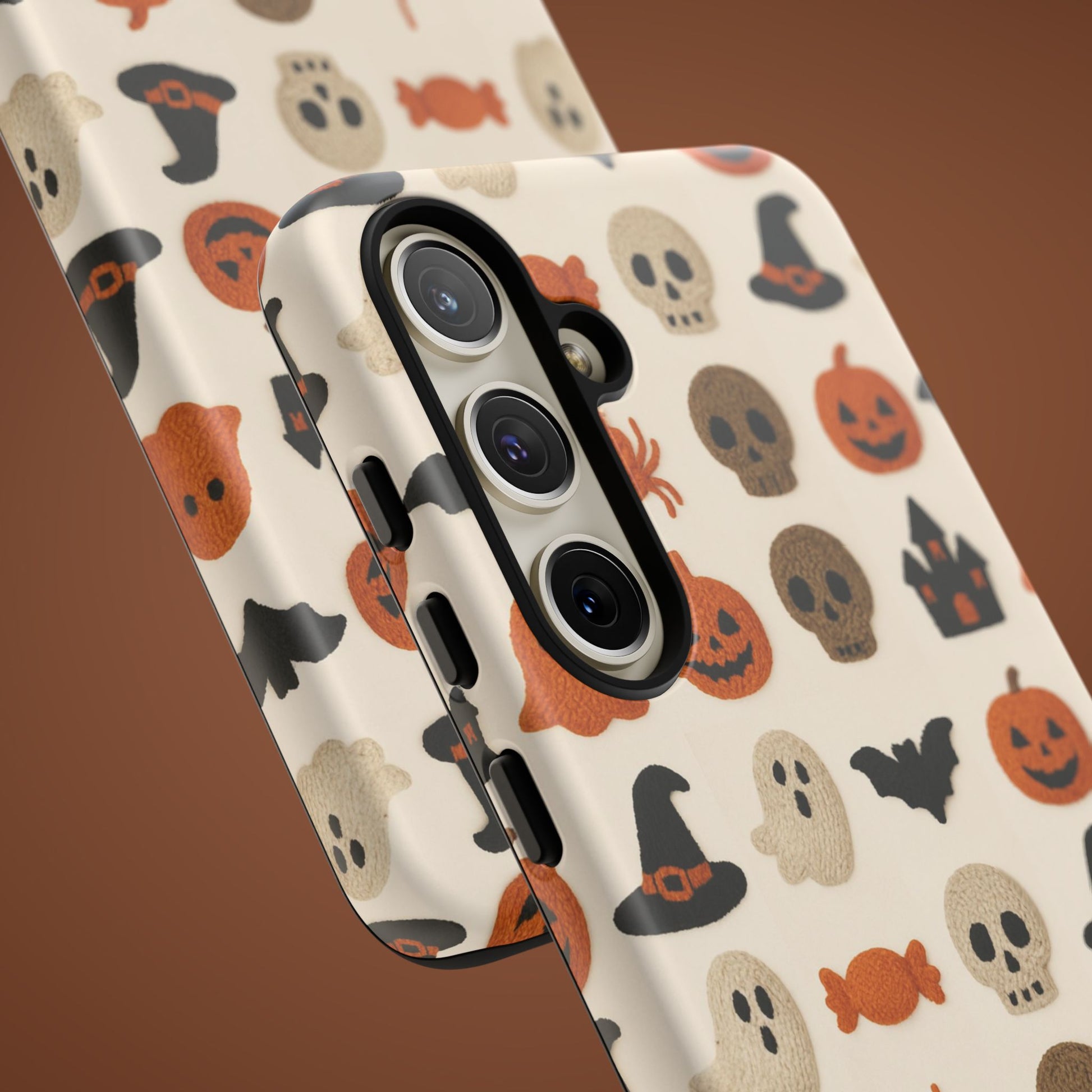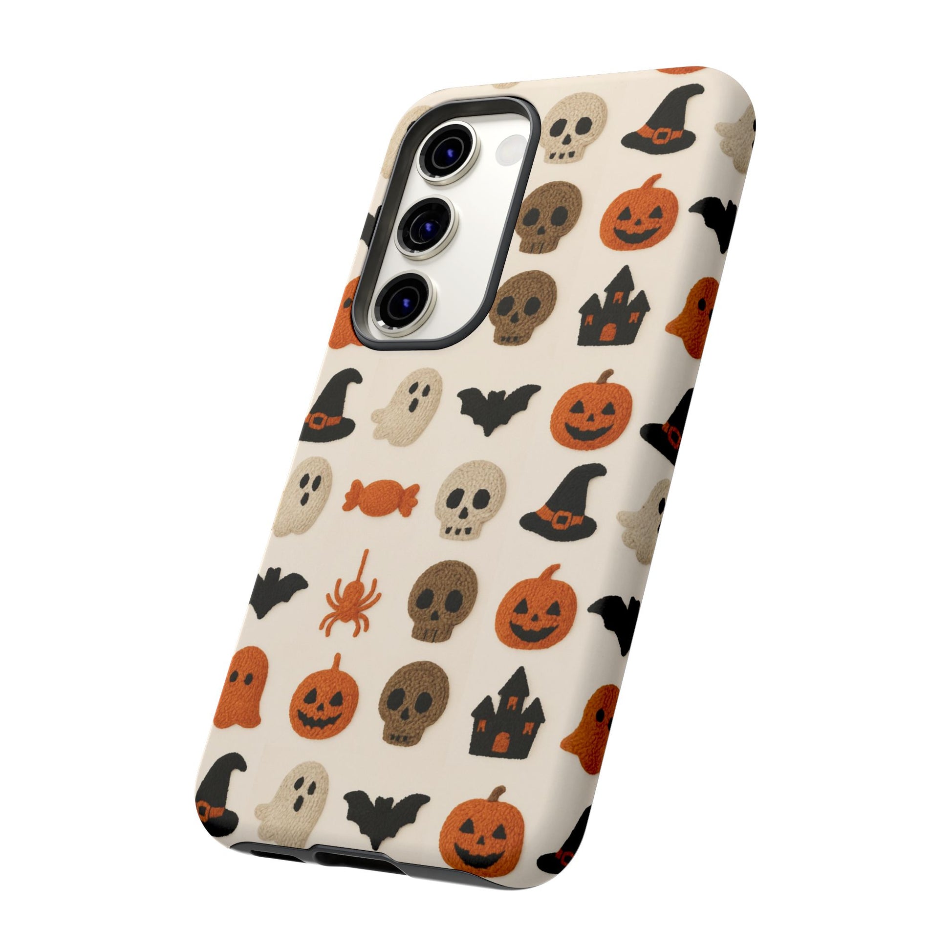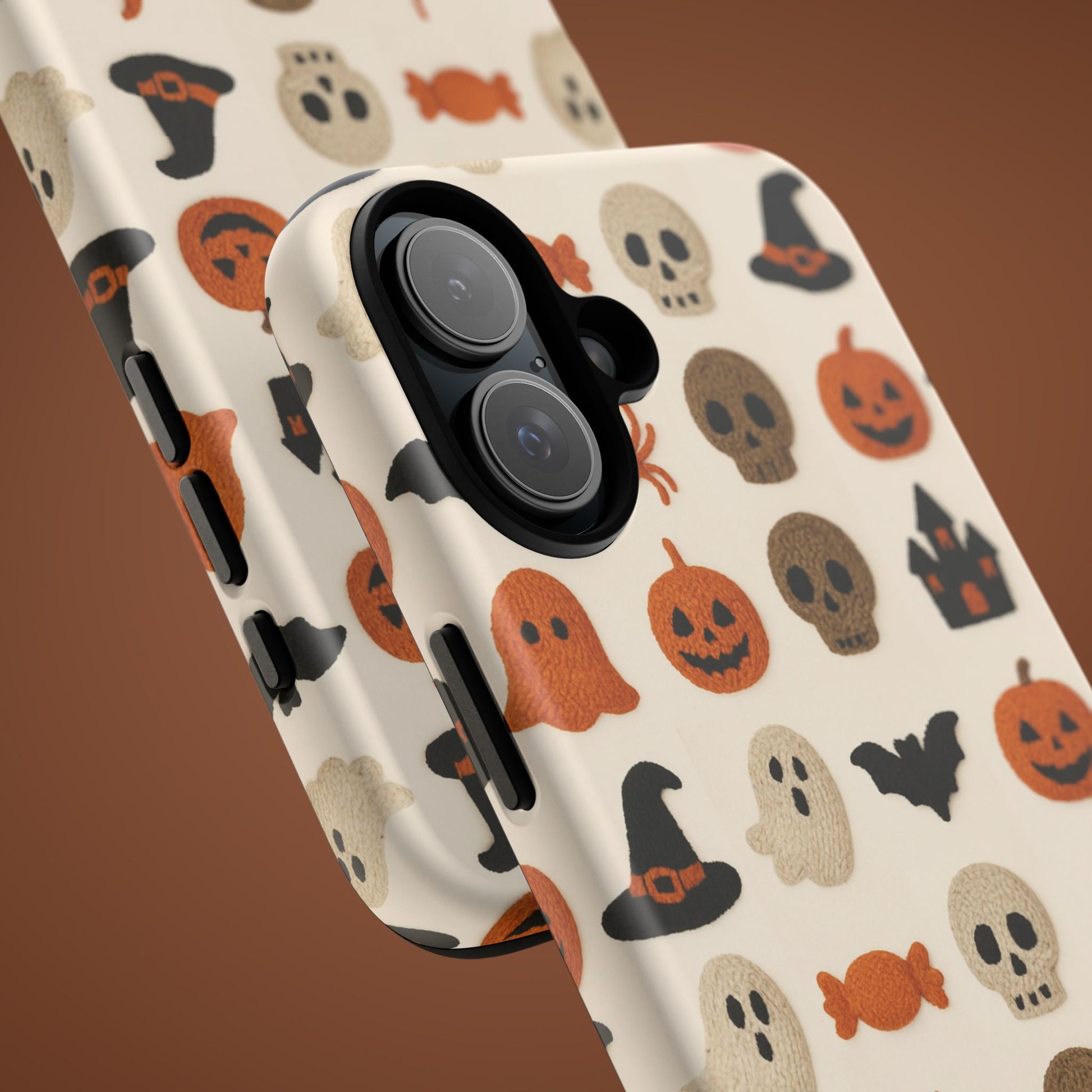 Celebrate spooky season all year round with this Halloween Phone Case featuring a playful pattern of ghosts, pumpkins, bats, cats, and spiders. The cute and spooky design adds festive flair while keeping your phone protected from scratches and bumps. Made with a slim durable shell, this case blends style and protection for everyday use.