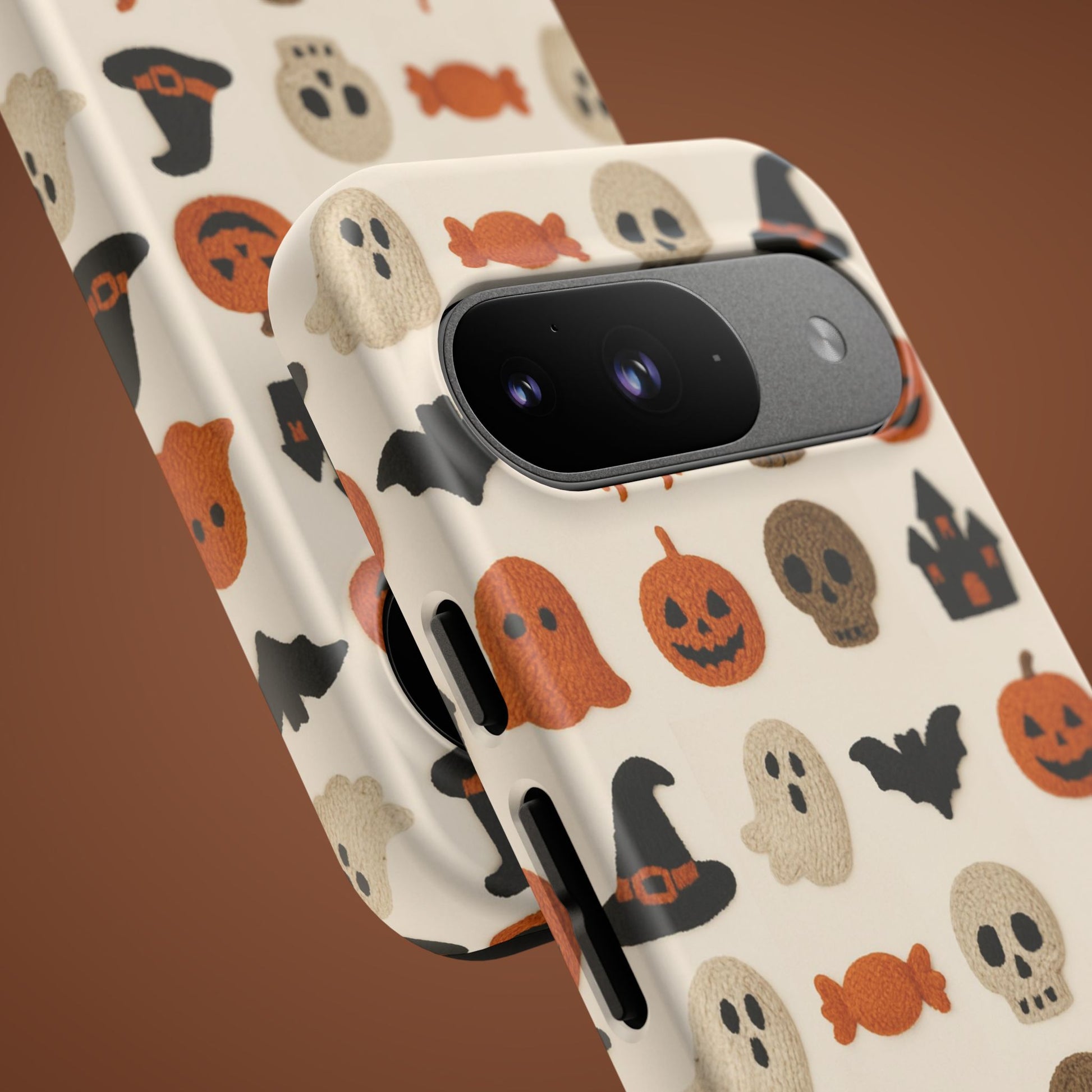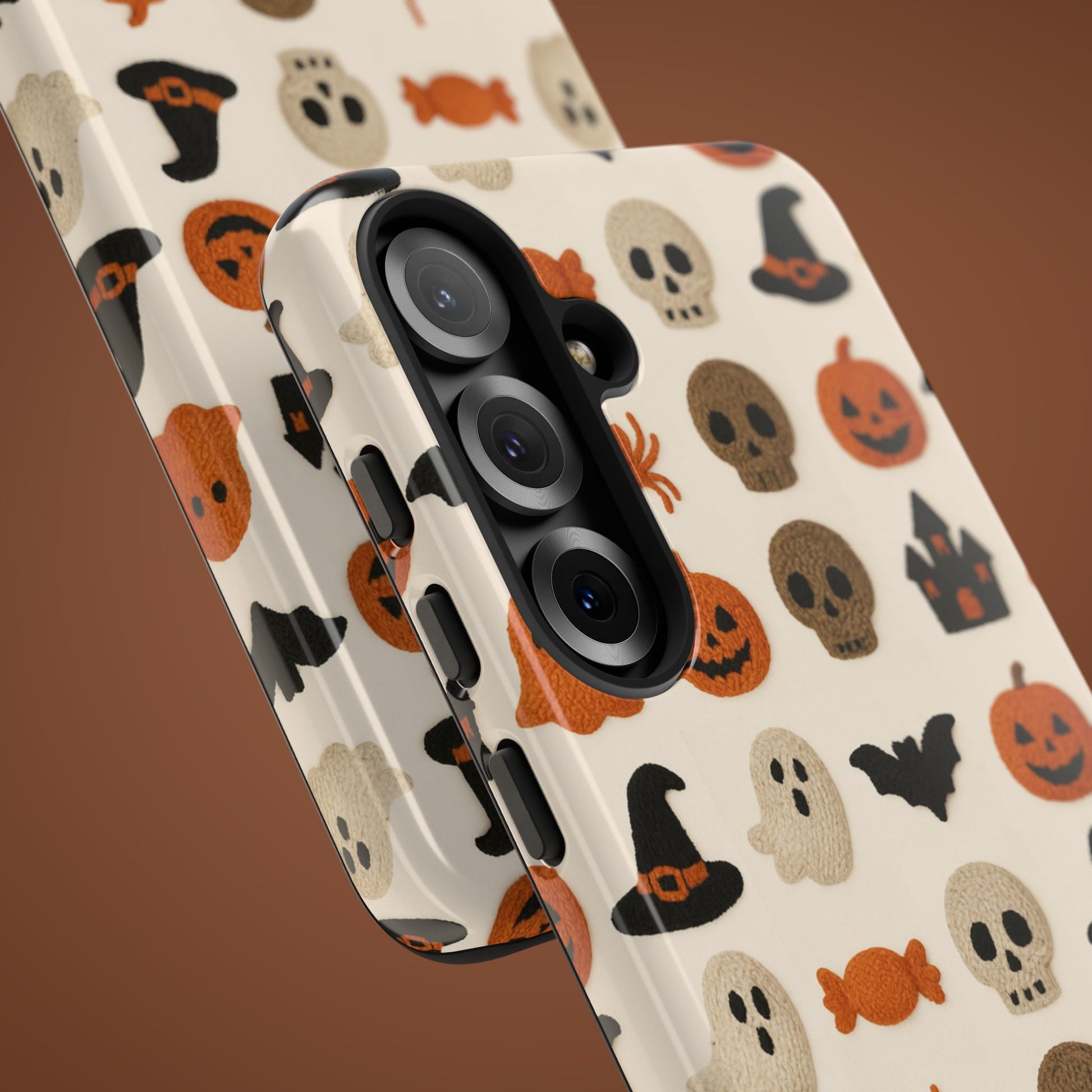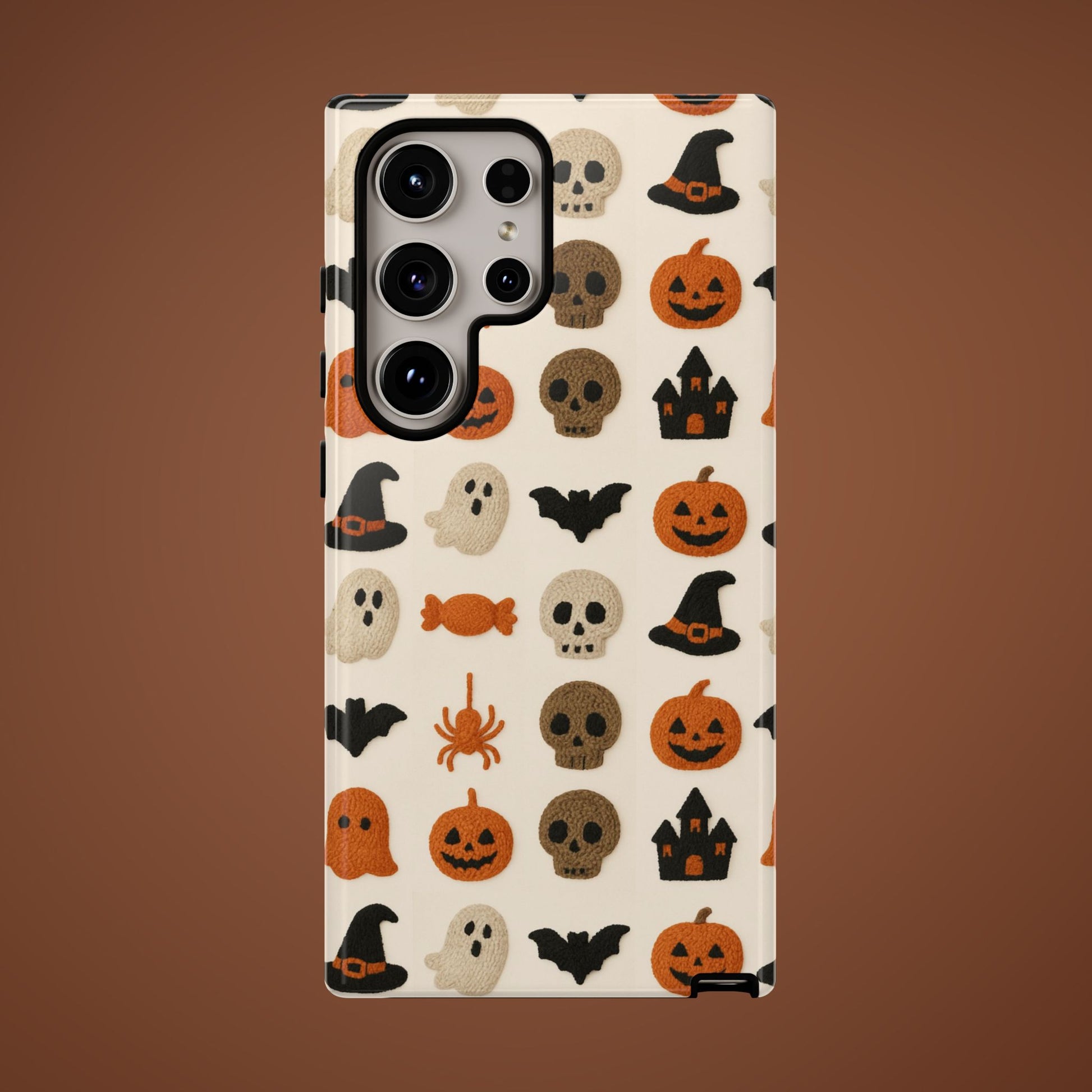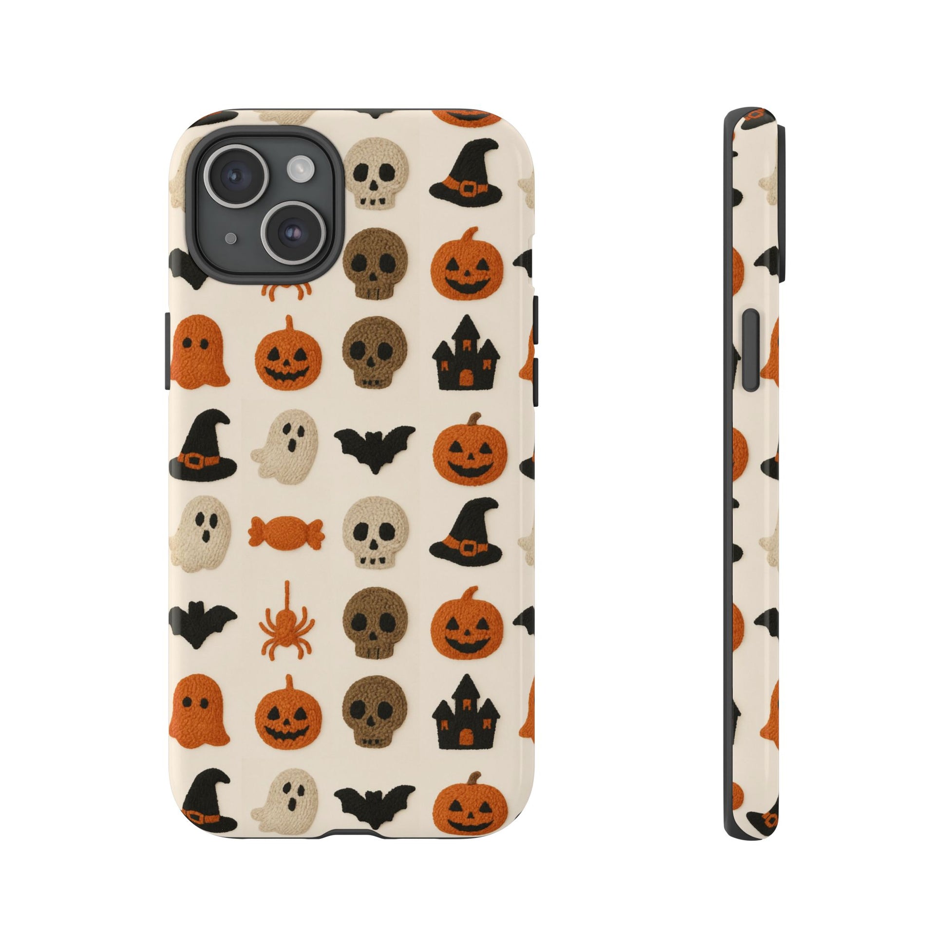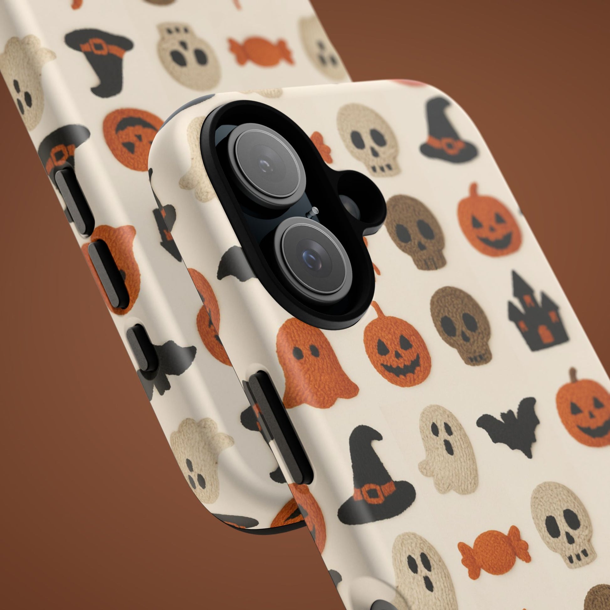 Celebrate spooky season all year round with this Halloween Phone Case featuring a playful pattern of ghosts, pumpkins, bats, cats, and spiders. The cute and spooky design adds festive flair while keeping your phone protected from scratches and bumps. Made with a slim durable shell, this case blends style and protection for everyday use.