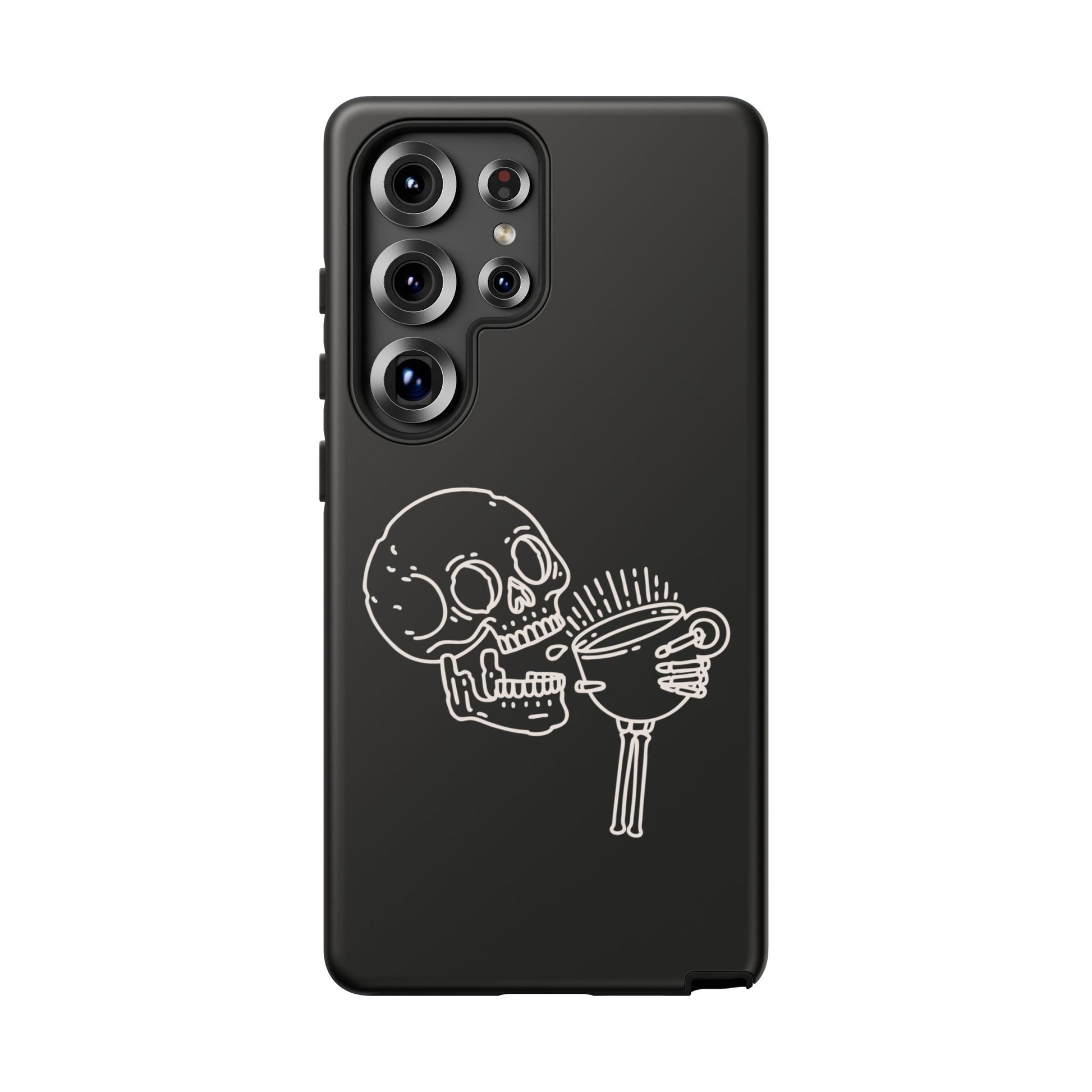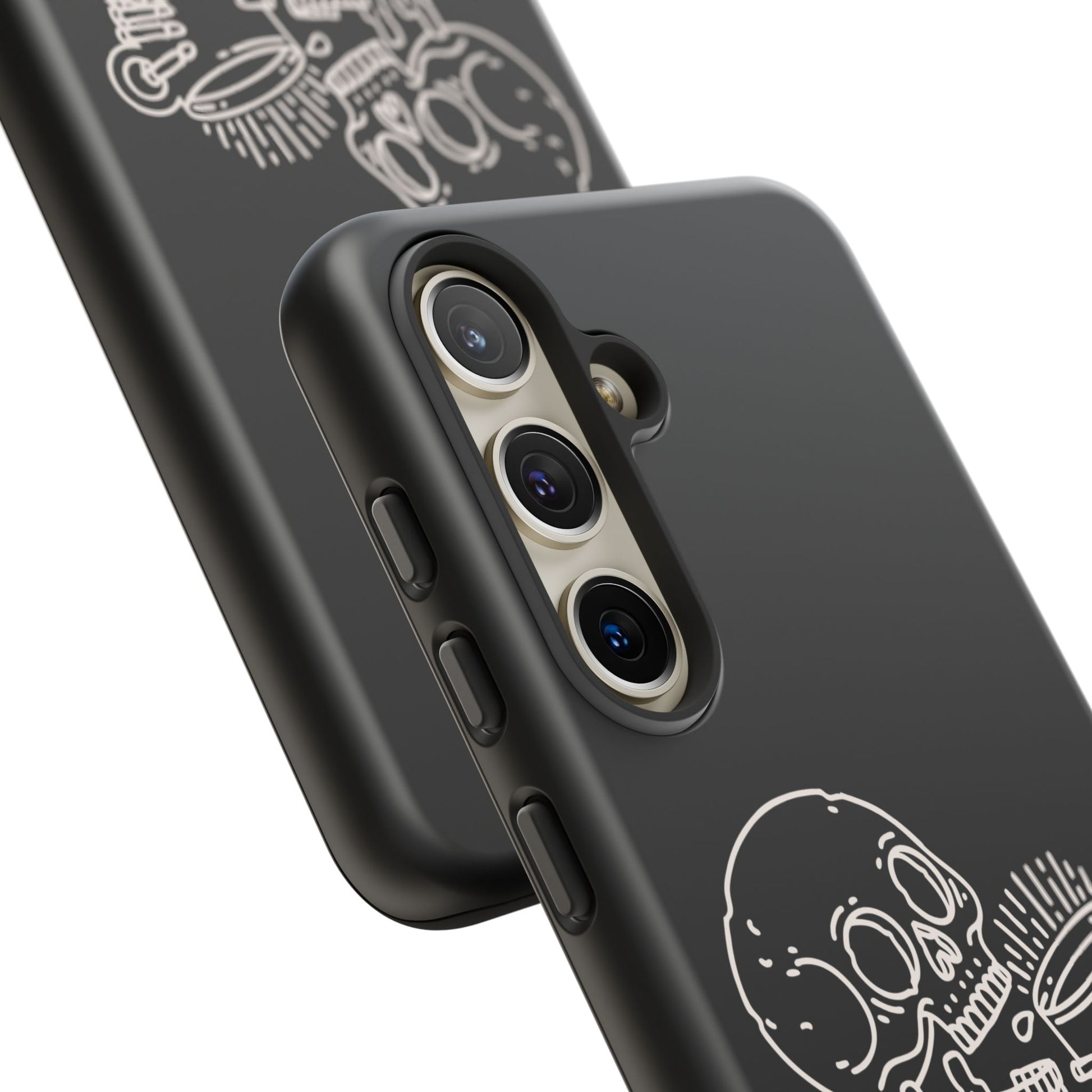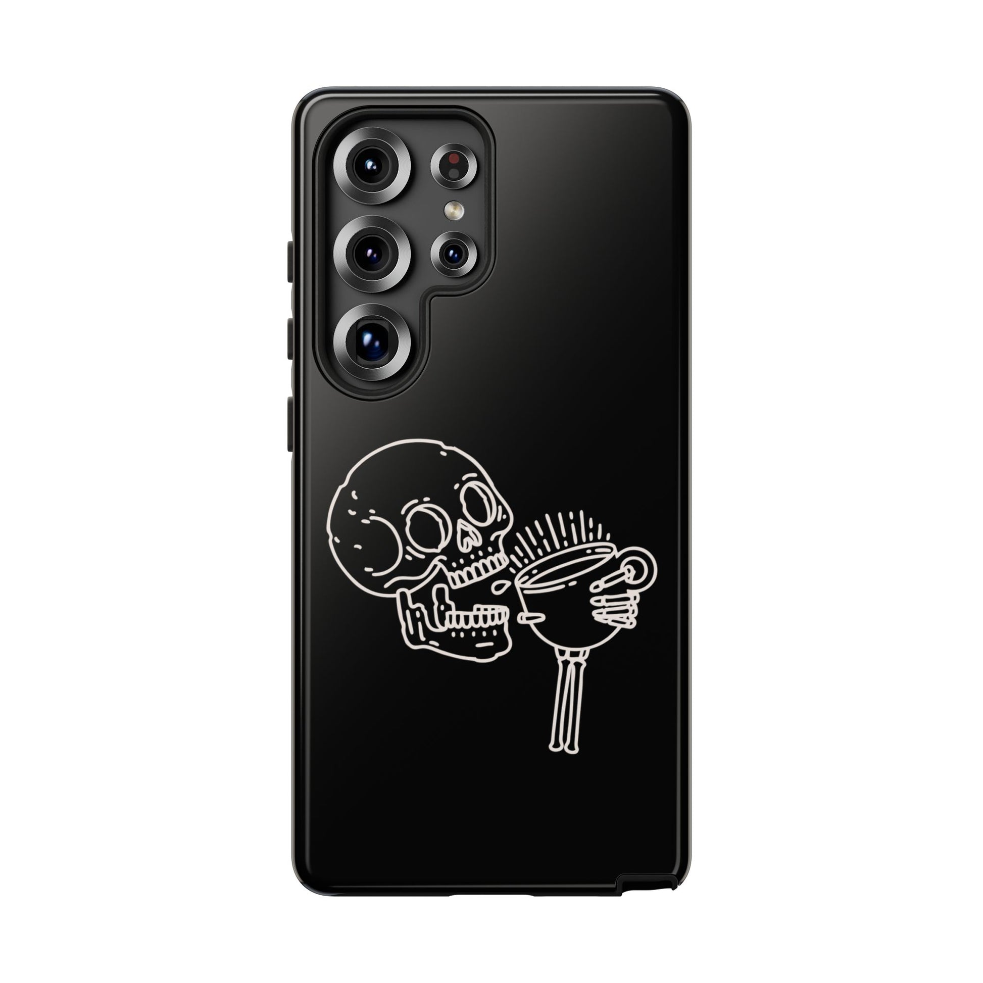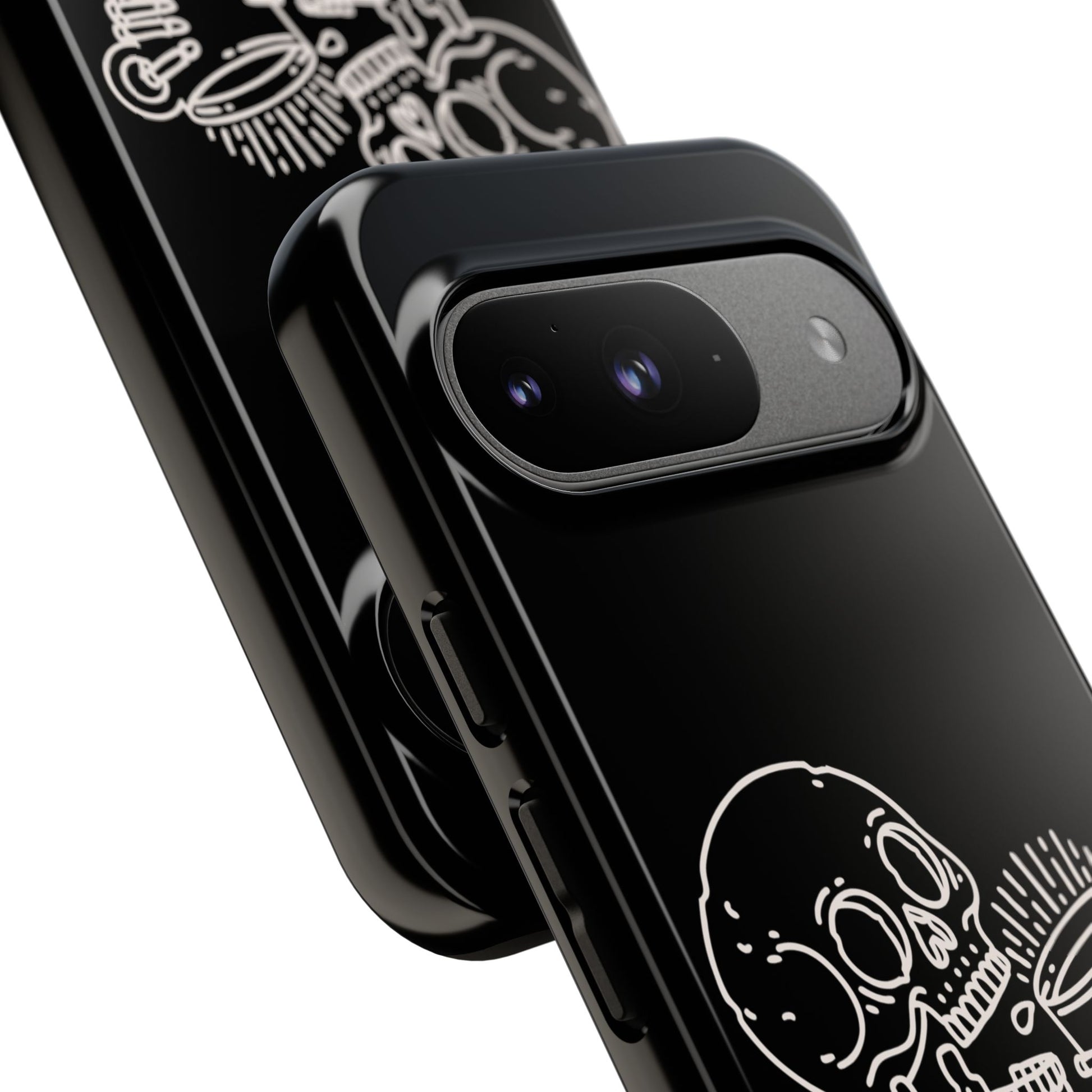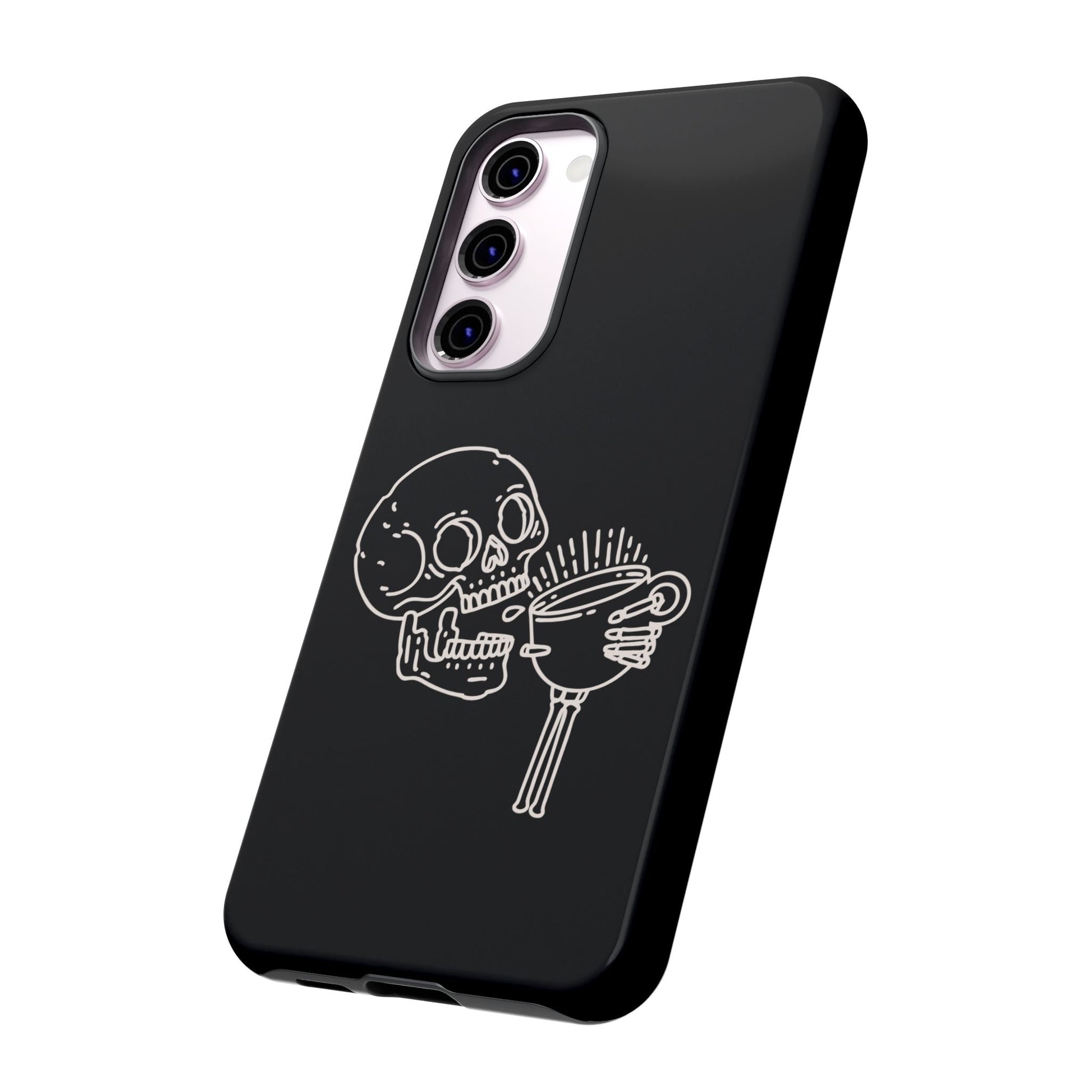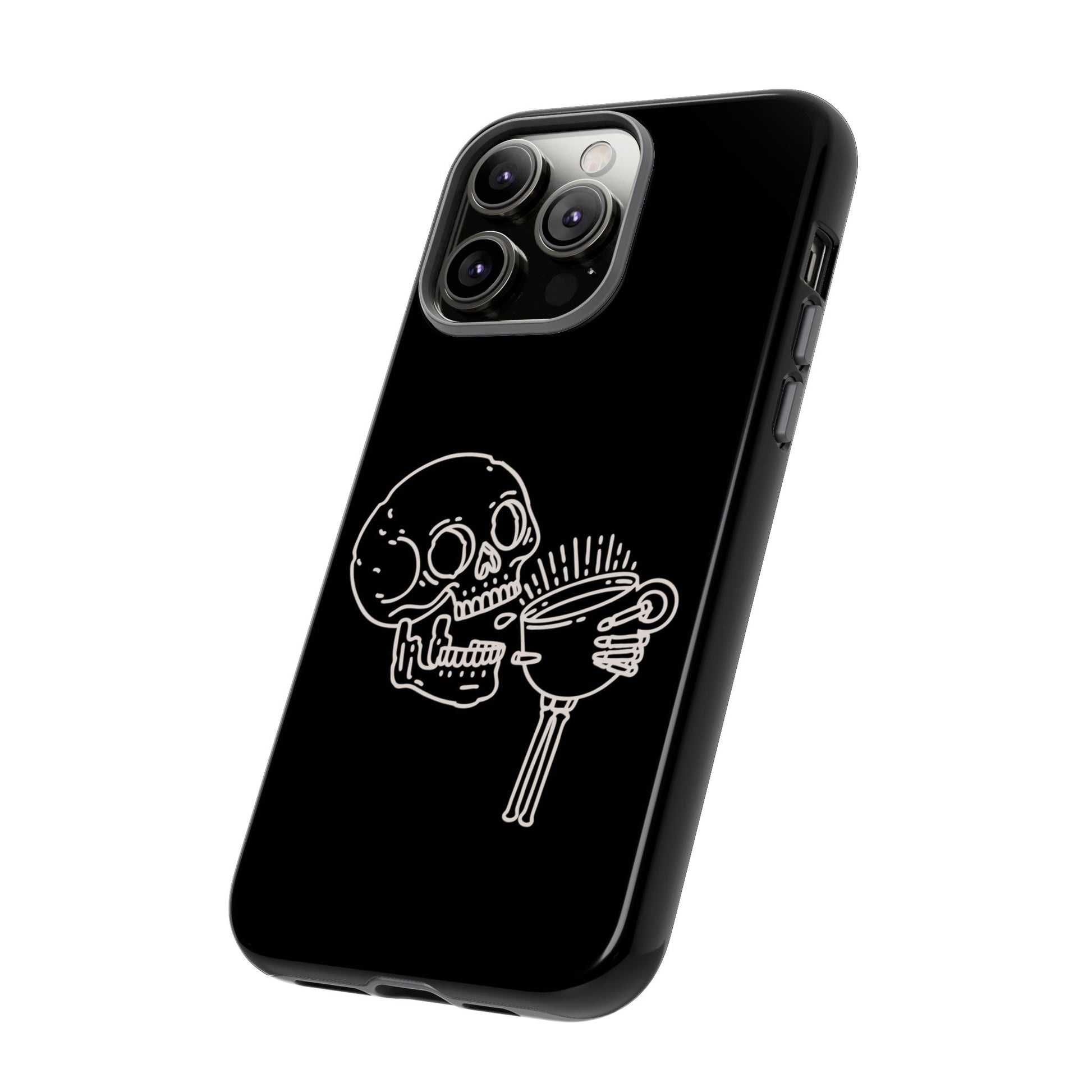 Skull and coffee phone case for iPhone, Samsung & Pixel. Gothic dark aesthetic design, perfect alternative accessory for coffee lovers & spooky style fans.