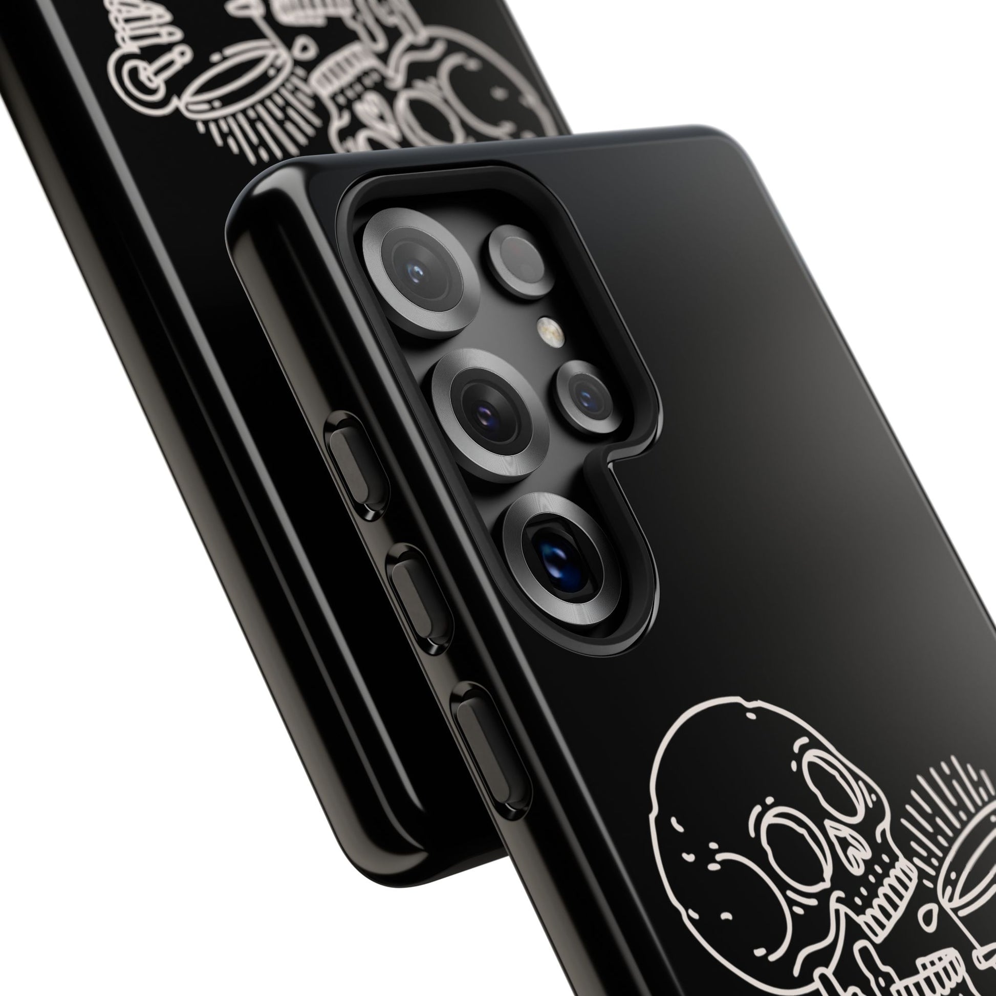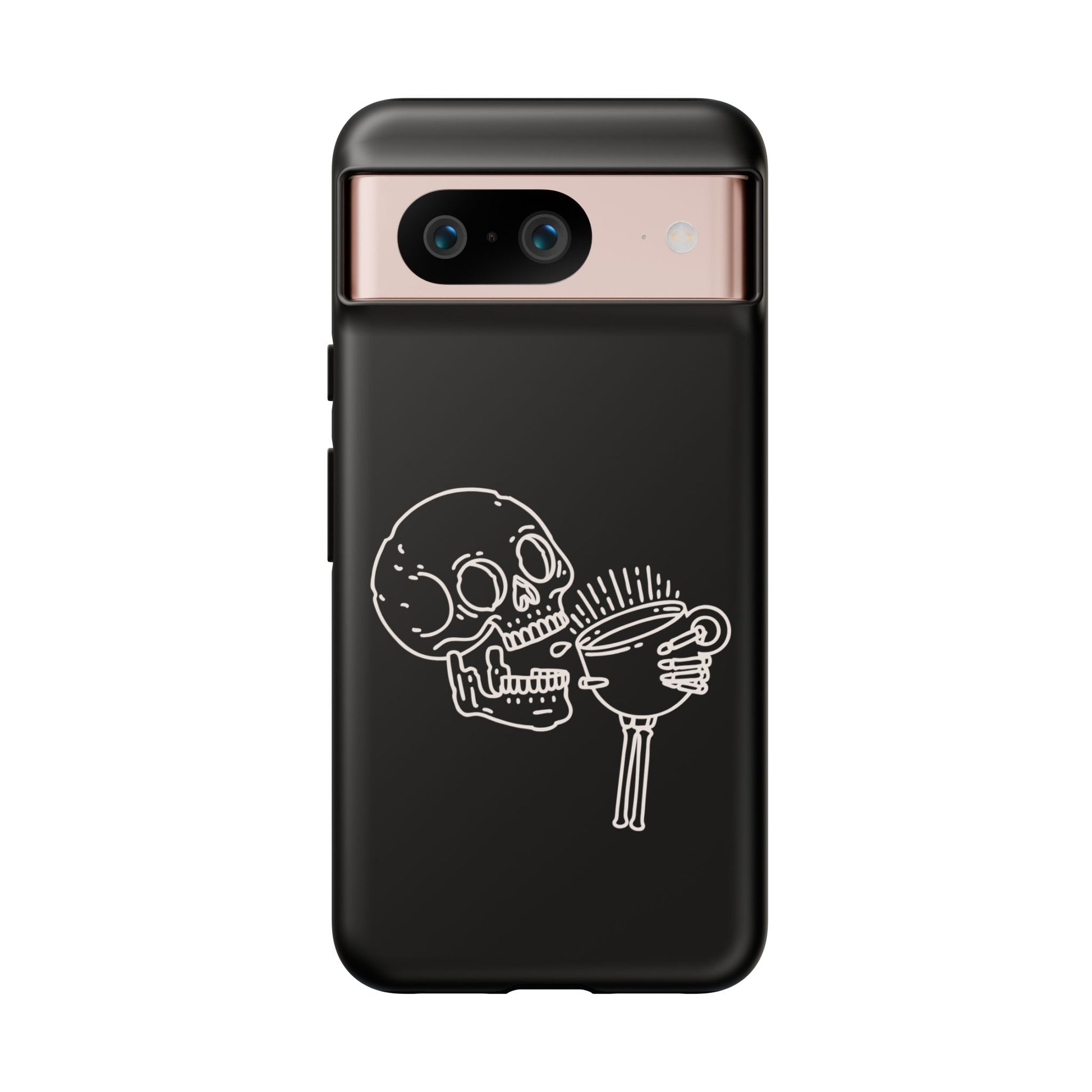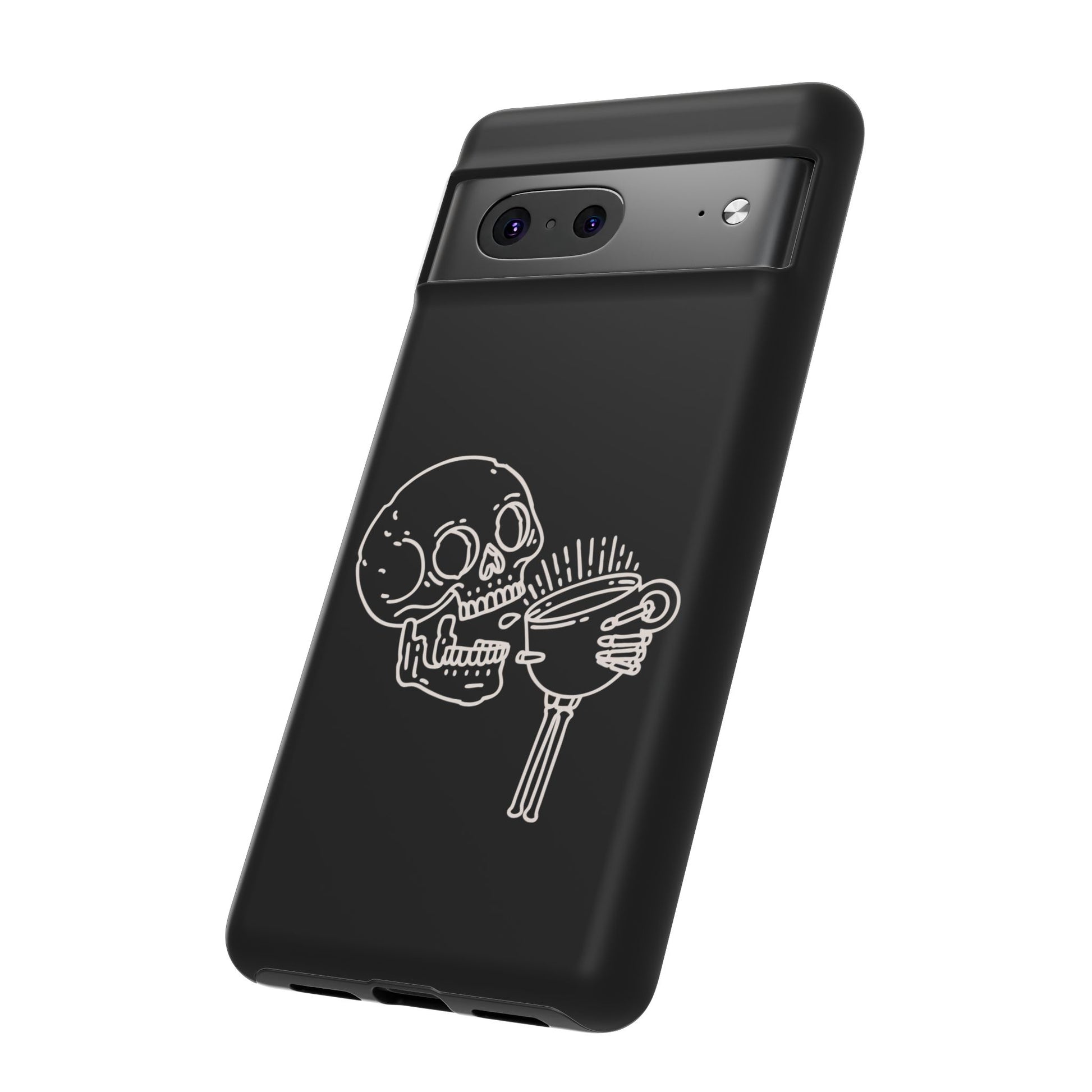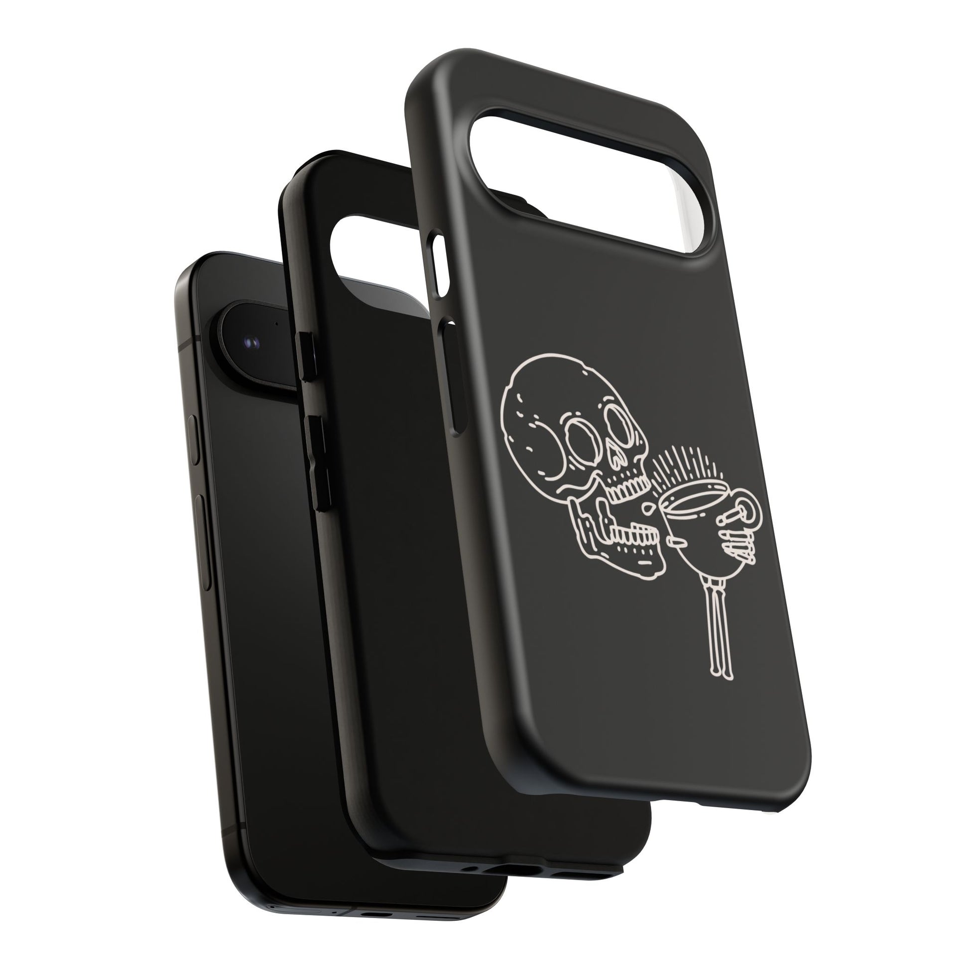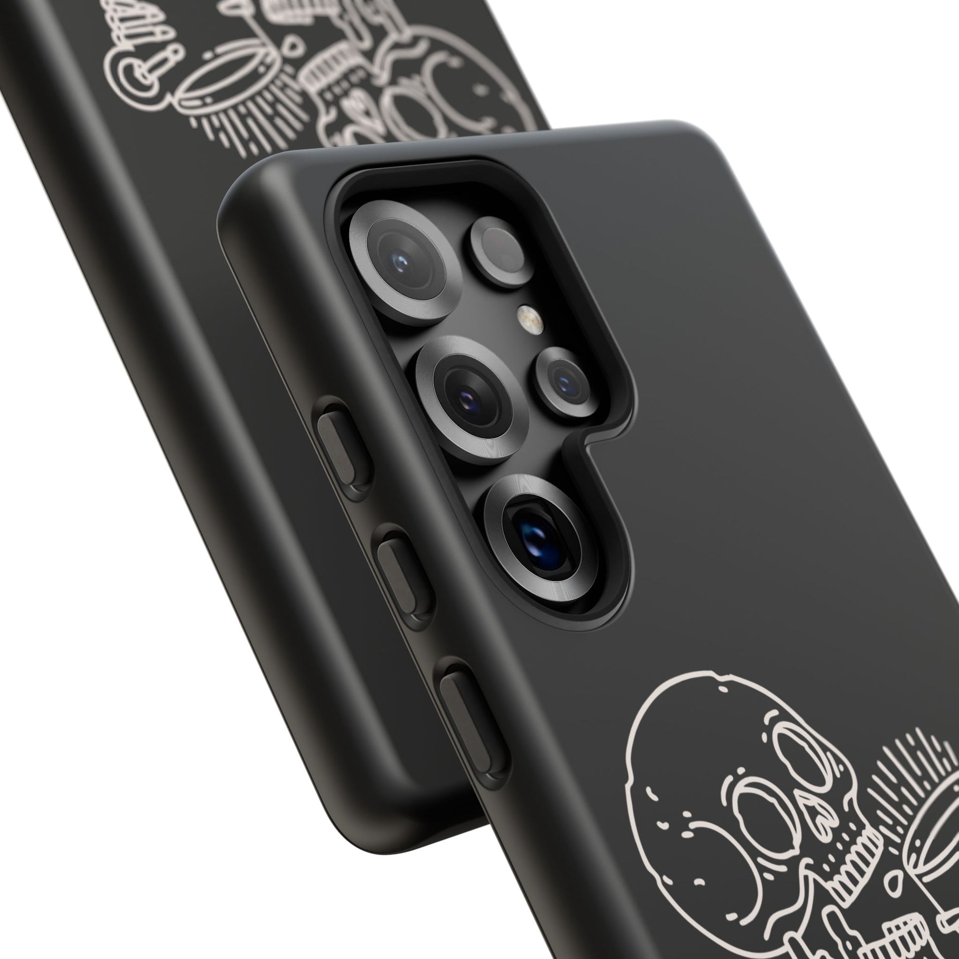 Skull and coffee phone case for iPhone, Samsung & Pixel. Gothic dark aesthetic design, perfect alternative accessory for coffee lovers & spooky style fans.