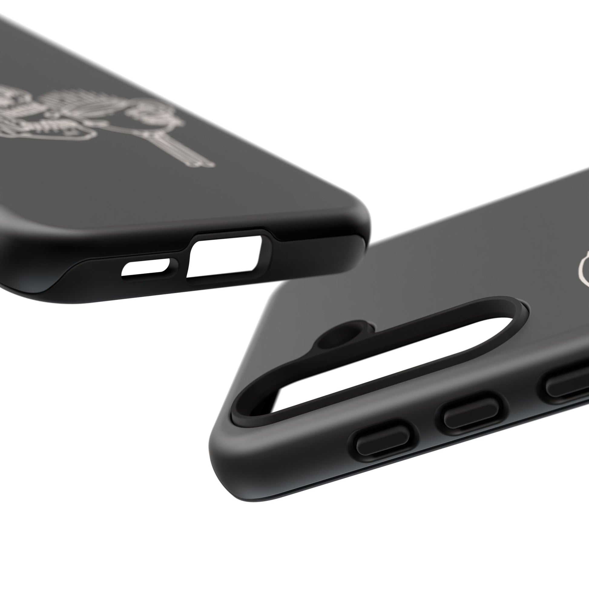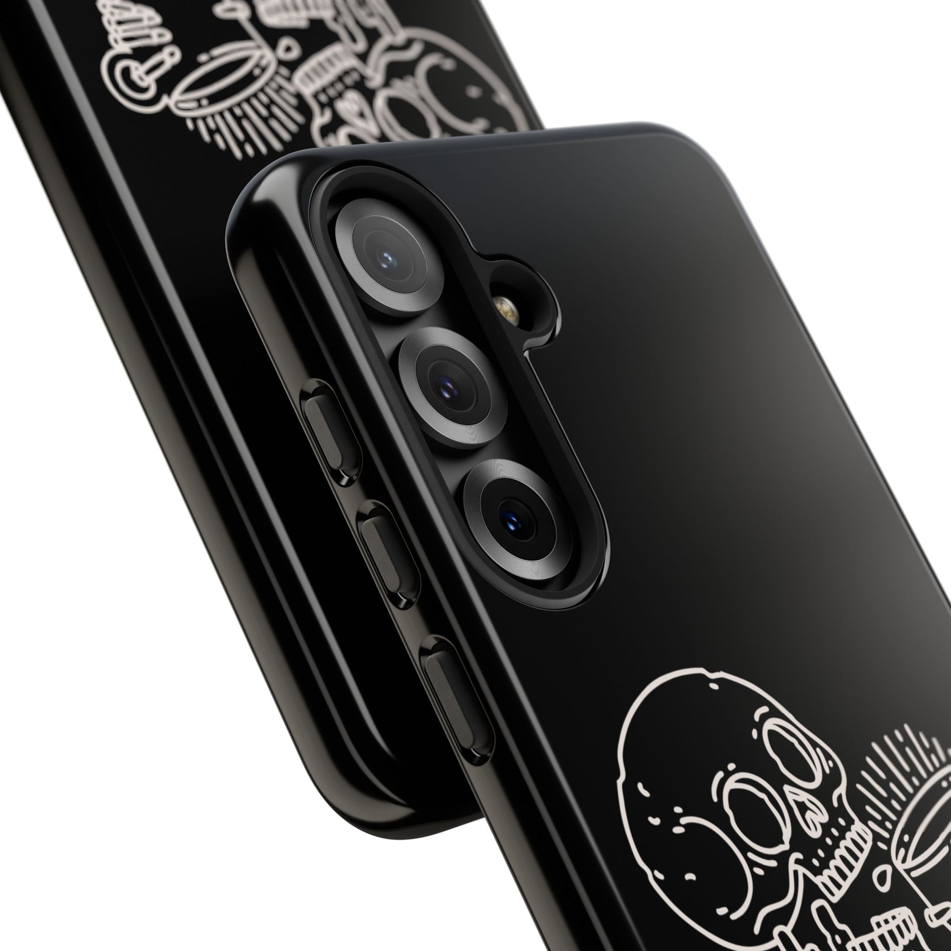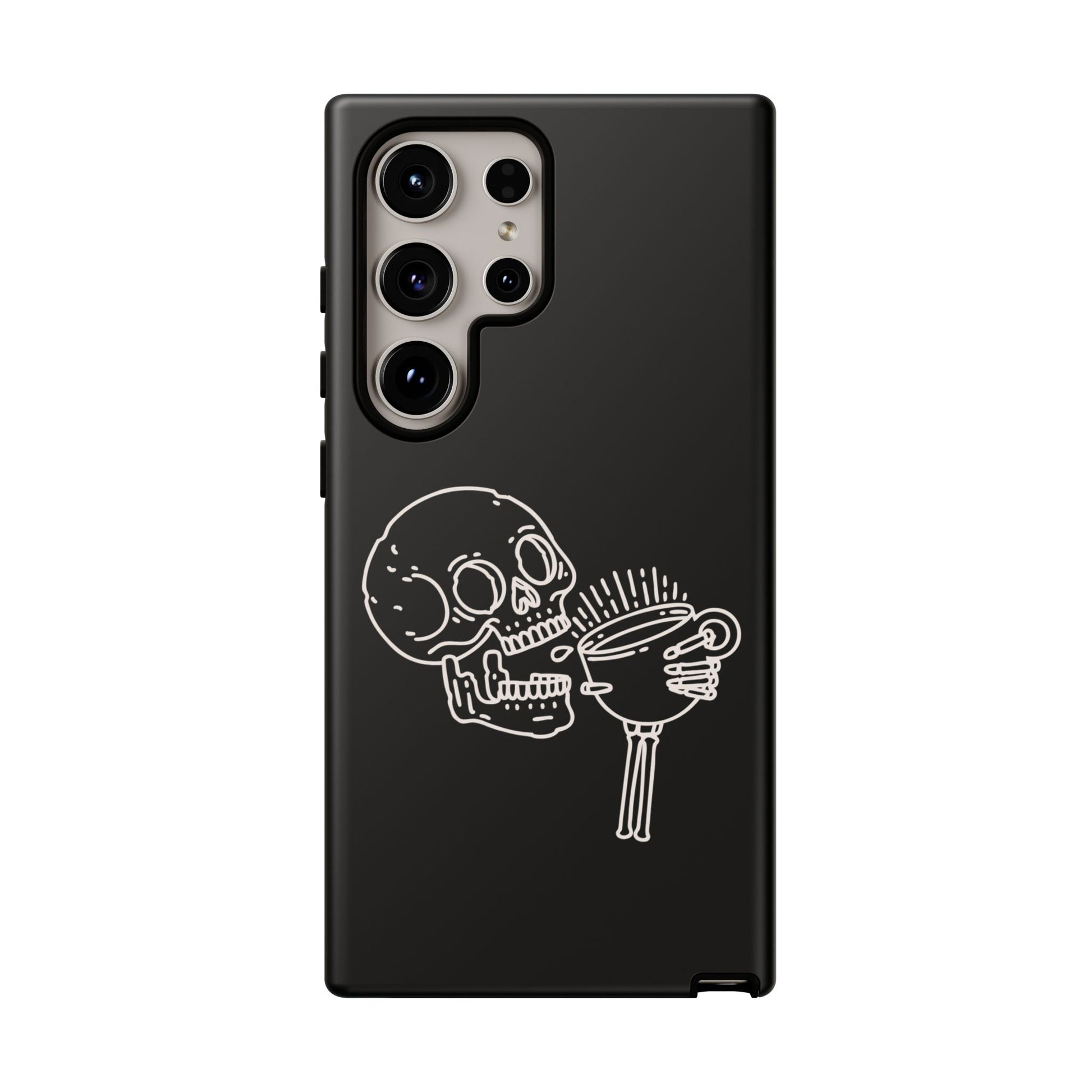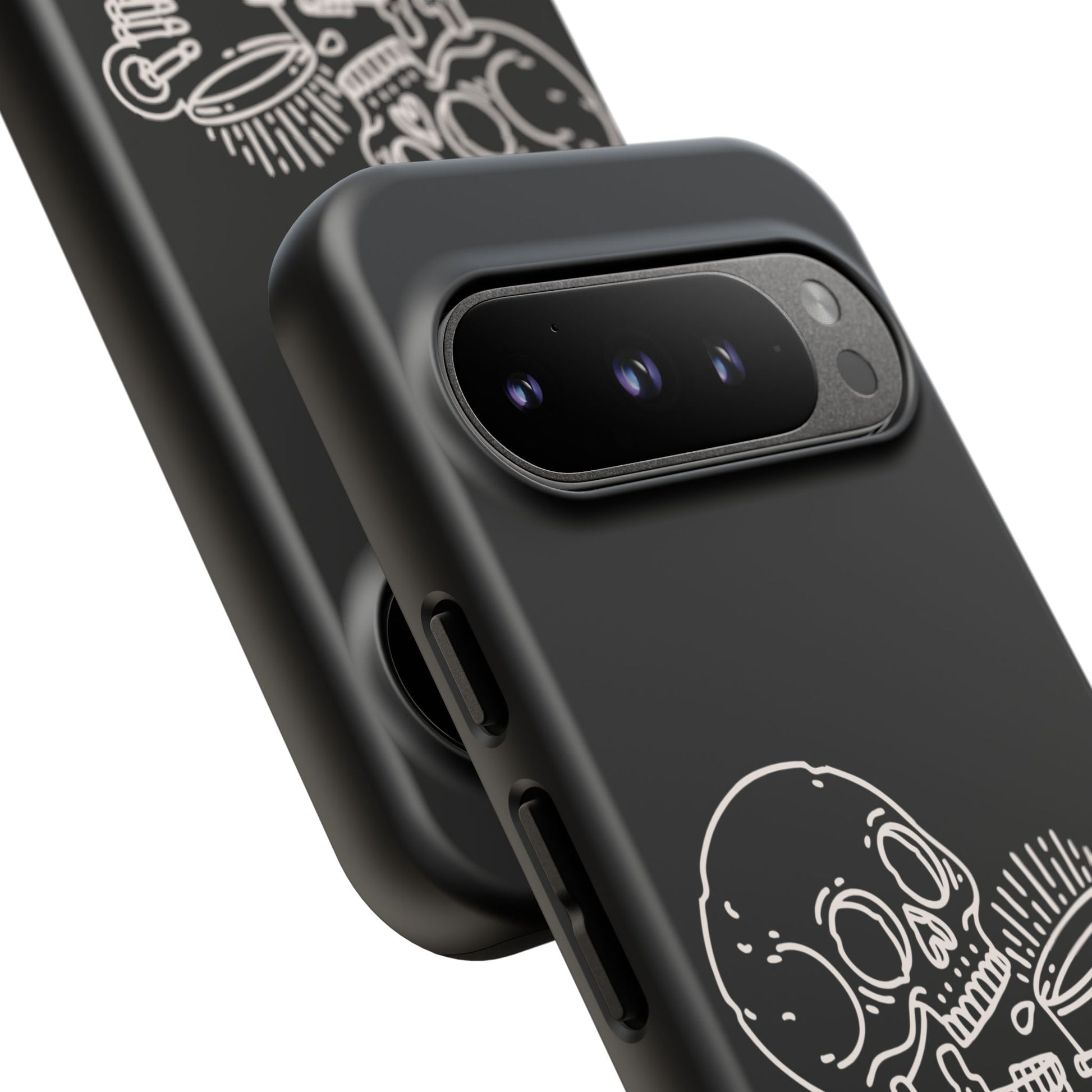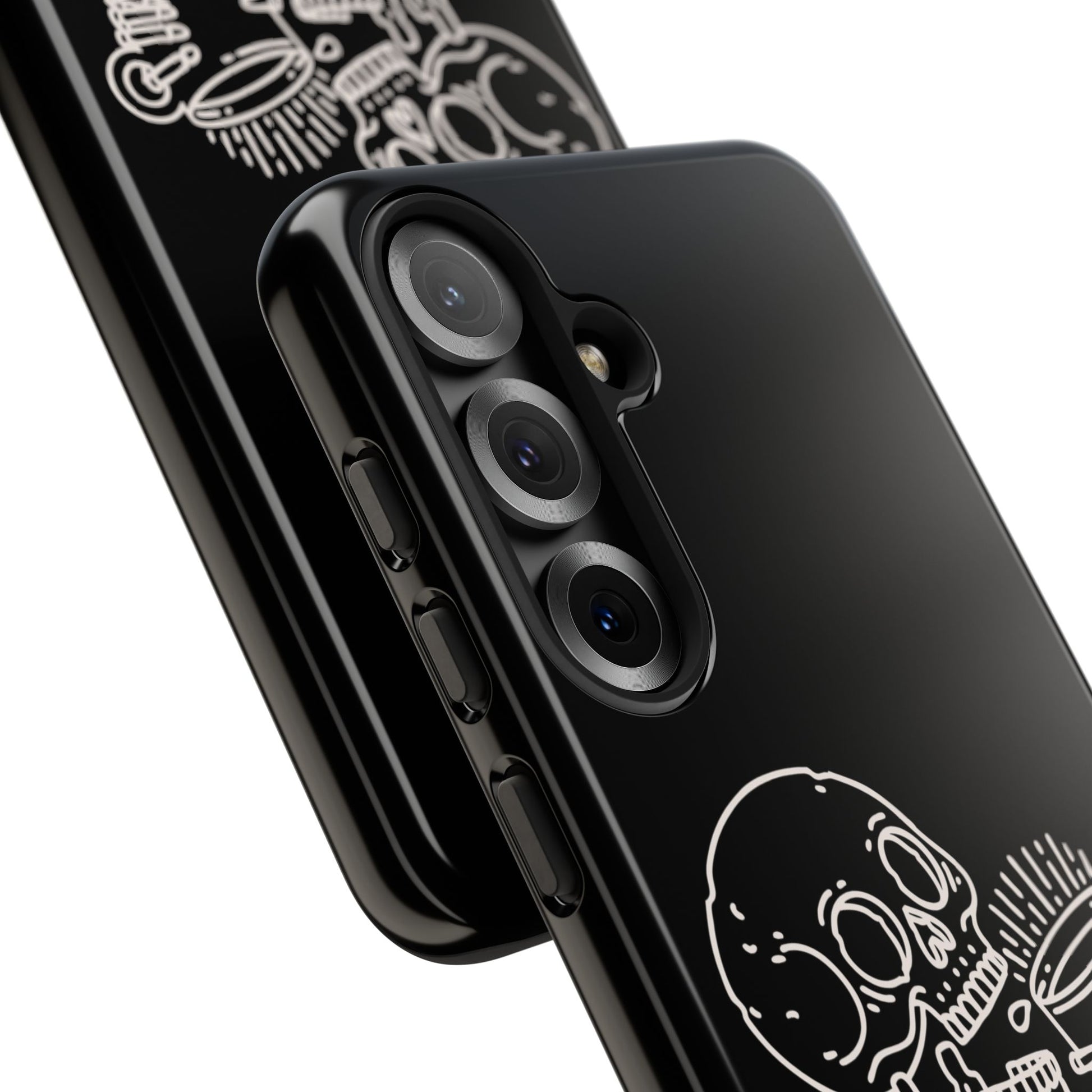 Skull and coffee phone case for iPhone, Samsung & Pixel. Gothic dark aesthetic design, perfect alternative accessory for coffee lovers & spooky style fans.