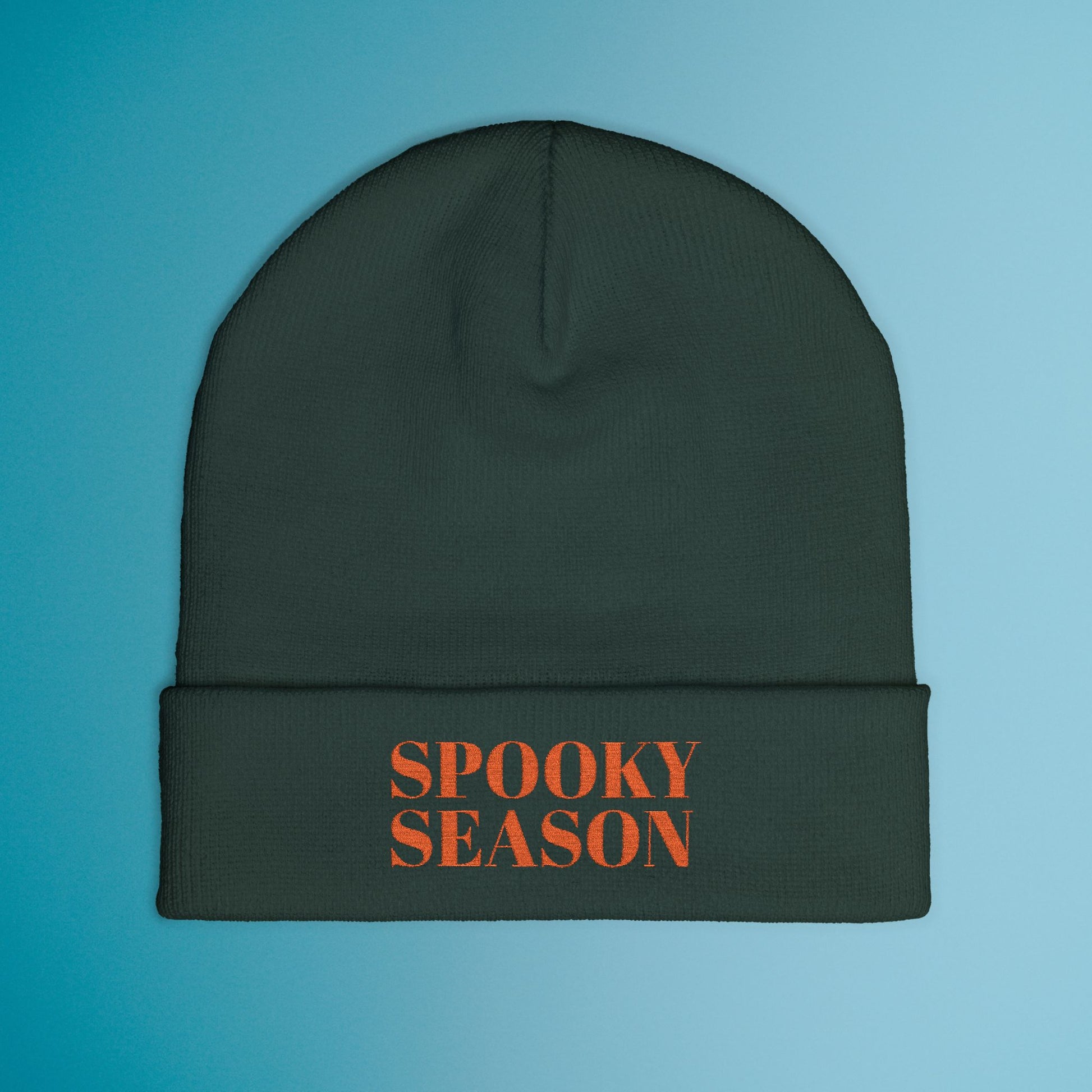 Spooky Season Embroidered Beanie, Halloween Knit Hat, Cozy Autumn Winter Accessory, Fall Fashion Gift