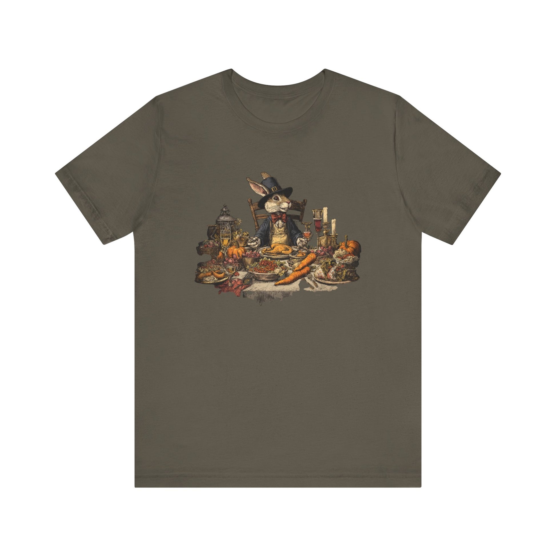 Thanksgiving Rabbit Feast T-Shirt Vintage Holiday Graphic Tee, Autumn Dinner Woodland Animal Shirt, Rustic Harvest Celebration Top